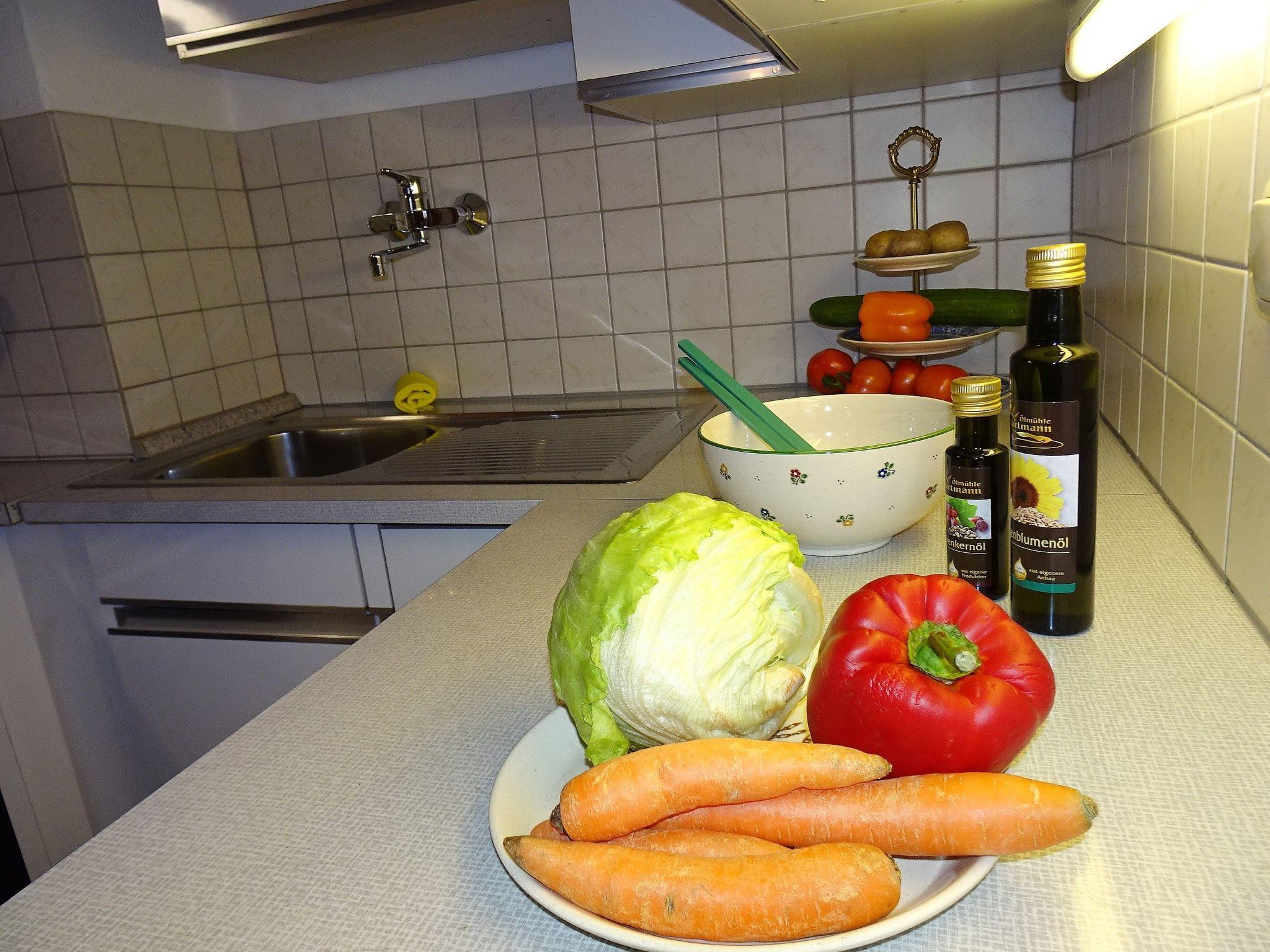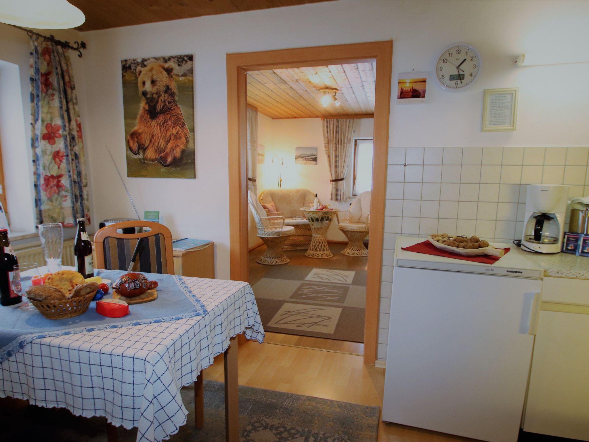 This holiday flat is located on the ground floor, approx. 32 sqm, for max. 2 persons. Divided into a living/bedroom with double bed and sitting area, separate kitchen with dining area. It is rustic and fully furnished, i.e. with plenty of crockery, glasses and cutlery, bed linen, towels (changed as required). Additionally microwave, egg cooker, toaster, bread machine, coffee machine, kettle, oven, radio/CD, colour TV, central heating, shower/WC, hairdryer, radio alarm clock, telephone. Free car parking available at the house.