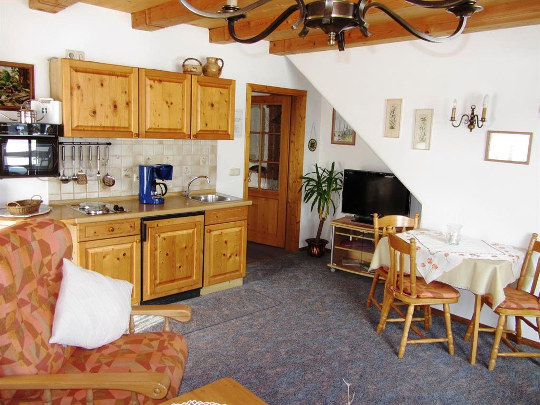 Im Landhausstil eingerichtete 43pm Ferienwohnung mit See- und Bergblick. Wohnküche mit Essecke, komplett eingerichtete Küchenzeile mit 2 Platten Kochfeld, Mikrowelle, Kaffeemaschine, Eier- und Wasserkocher, Toaster, Kühlschrank mit 3 Sterne Gefrierfach, Couchgarntiur, Flat TV mit SAT Anschluß, Direktwahltelefon, separates Schlafzimmer mit Doppelbett, Ganzkörperspiegel, Radiowecker, Bad mit Fenster, Dusche und WC, Kosmetikspiegel, Fön, Staubsauger, möblierter Süd- und Westbalkon. An den Balkontüren Fliegengitter. Im Preis inbegriffen: Endreinigung, Bötchenservice, WLan, Bett- und Tischwäsche, Hand- und Geschirrtücher, Reinigungsmittel.