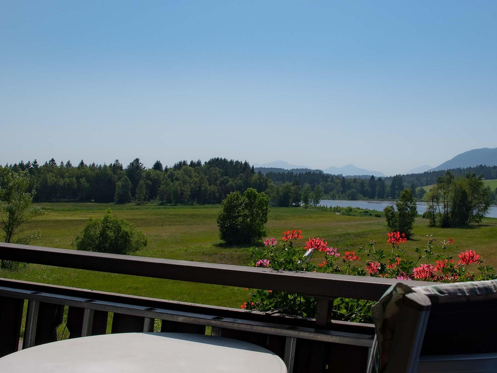 Sehr schöne, helle, großzügige Wohnung, ca 65qm, mit Balkon und herrlichen Blick auf den Bayersoier See und die Berge. Diese Wohnung ist sehr liebevoll und neu eingerichtet. Sie verfügt über eine voll ausgestattete Küche mit Essecke, ein Wohnzimmer, ein Schlafzimmer, ein helles Bad mit Dusche, WC und Fenster sowie ein zusätzliches separates WC. Ein Flachbild-TV mit DVD, eine hochwertige Musikanlage, Bücher und diverse Spiele sorgen für Unterhaltung und beste Erholung. Schlafmöglichkeiten auch für 3. Person!Auf Wunsch Matratze mit anderem Härtegrad.