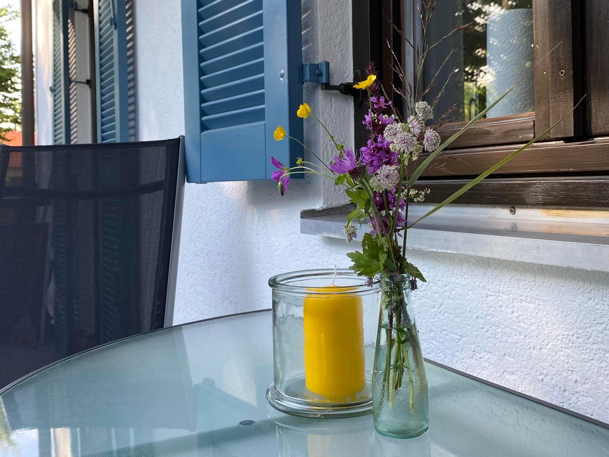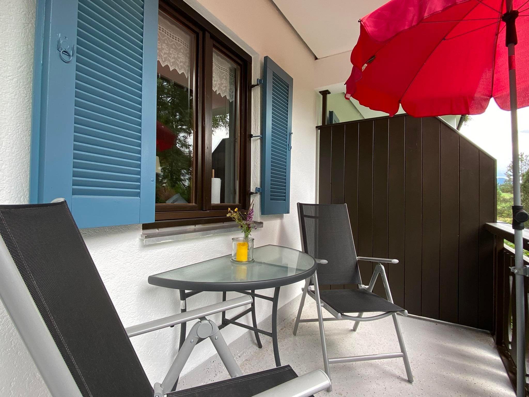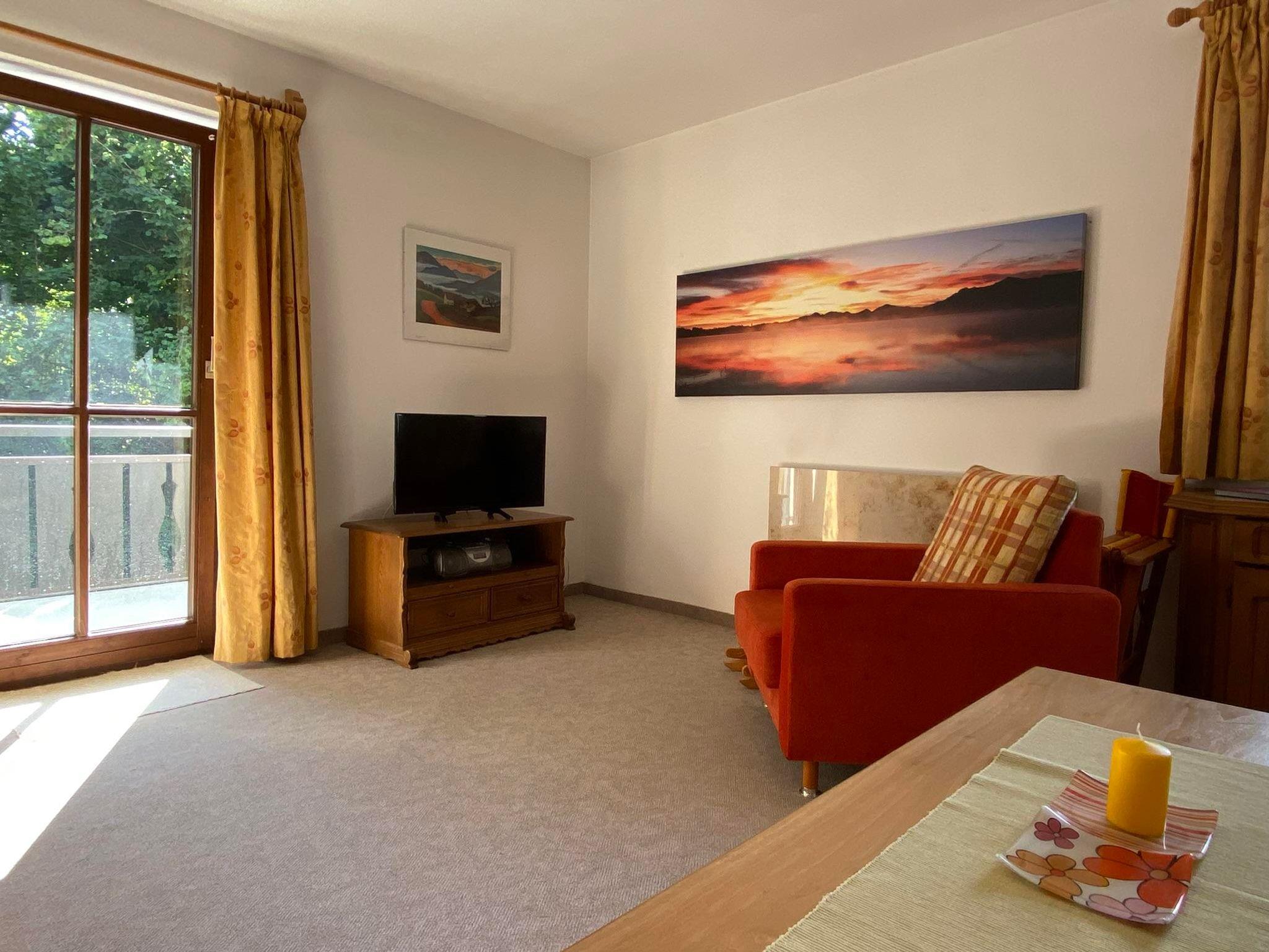 Die Wohnung ist sehr schöne individuell und gemütliche eingericht ,ca 50qm, mit Terrasse und Blick auf den Bayersoier See und die Berge.Sie verfügt über eine voll ausgestattete offene Küche mit Essecke zum Wohnzimmer, ein Schlafzimmer mit Doppelbett, ein Bad mit Dusche und WC. Ein Flachbild-TV, eine Musikanlage, Büchern und diverse Spiele sorgen für Unterhaltung und beste Erholung.Schlafmöglichkeiten auch für 3. und 4. Person!