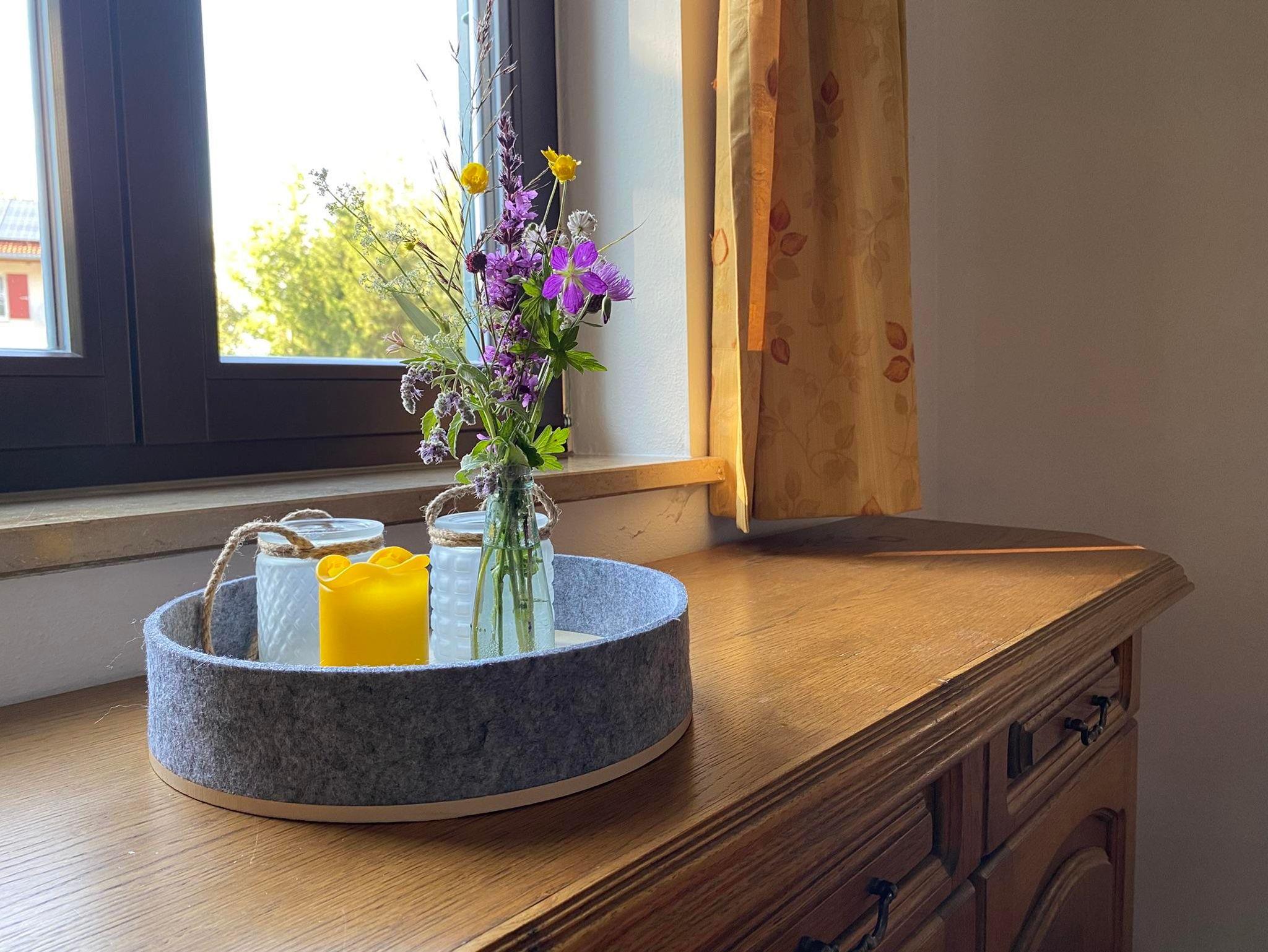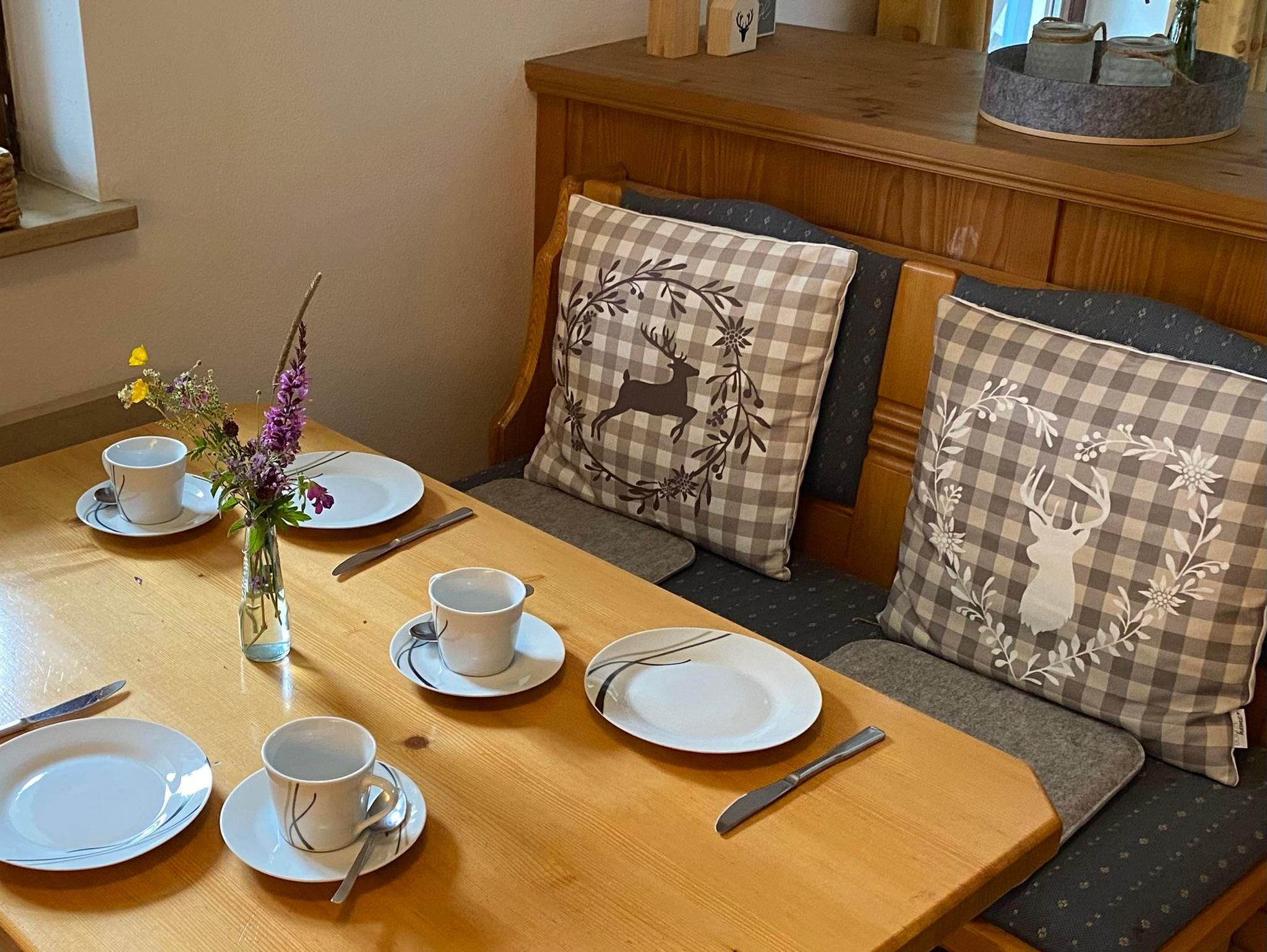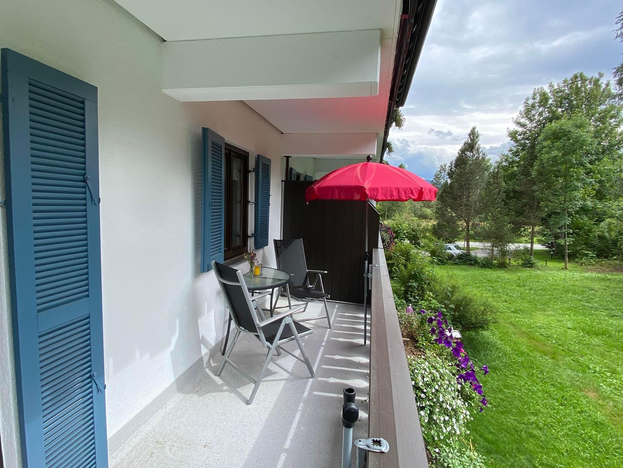 Die Wohnung ist sehr schöne individuell und gemütliche eingericht ,ca 50qm, mit Terrasse und Blick auf den Bayersoier See und die Berge.Sie verfügt über eine voll ausgestattete offene Küche mit Essecke zum Wohnzimmer, ein Schlafzimmer mit Doppelbett, ein Bad mit Dusche und WC. Ein Flachbild-TV, eine Musikanlage, Büchern und diverse Spiele sorgen für Unterhaltung und beste Erholung.Schlafmöglichkeiten auch für 3. und 4. Person!