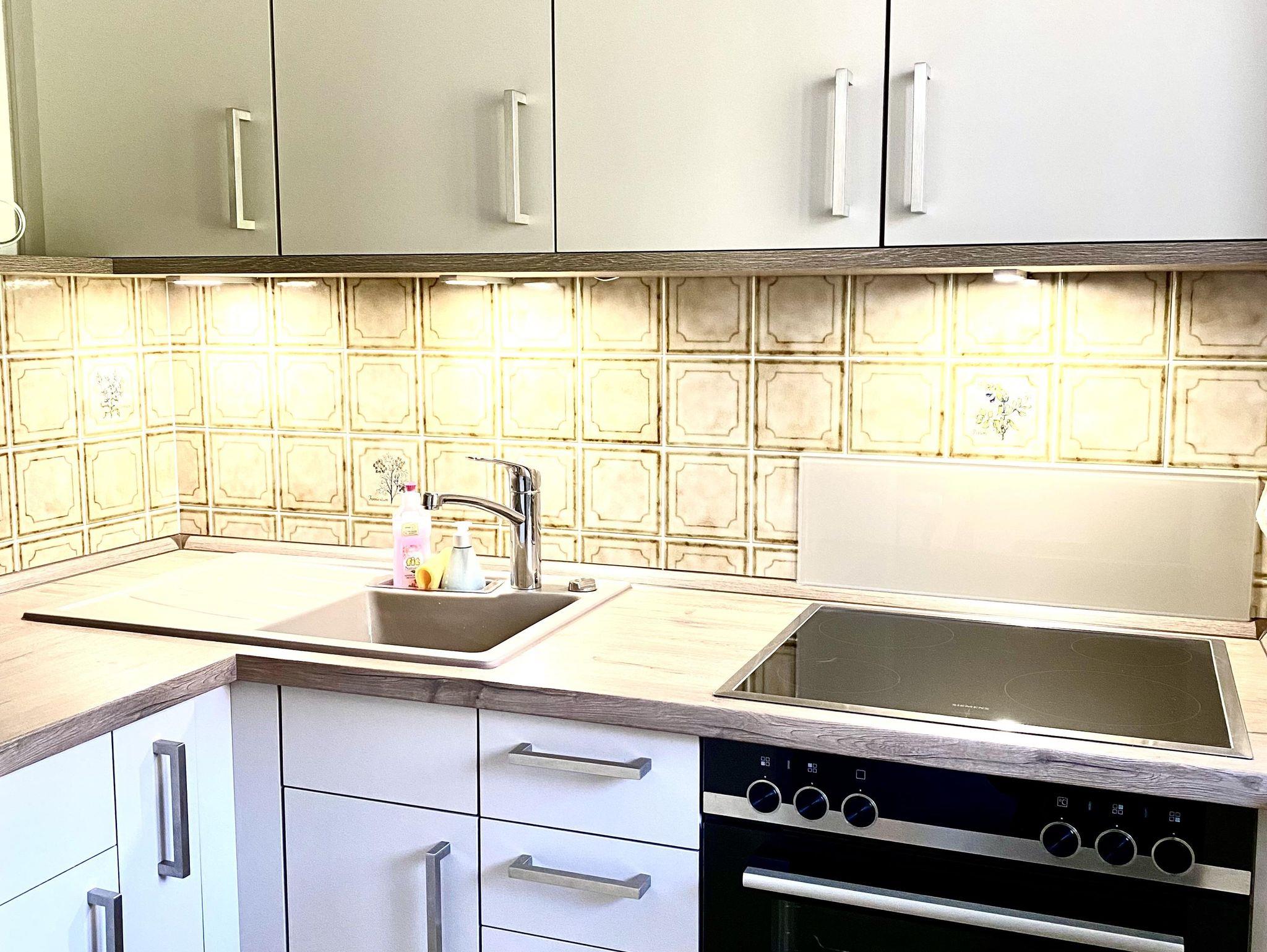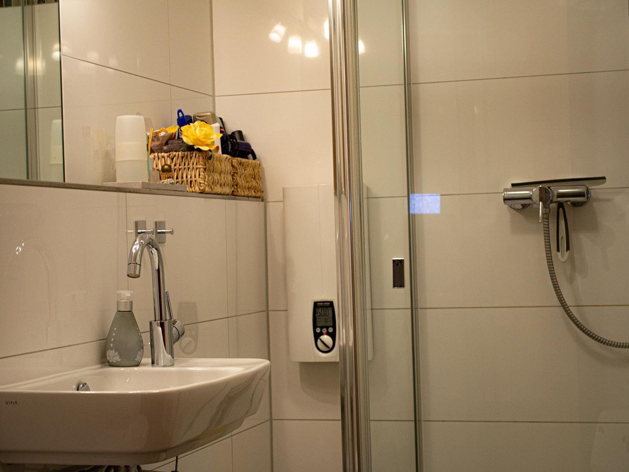 Eine kleine gemütlich eingerichtete Wohnung, ca 38qm, mit Terrasse. Die Wohnung hat kein separates Schlafzimmer das Doppelbett steht in einer Nische und ist mit einem Vorhang vom Wohnraum abgetrennt. Die Wohnung verfügt über eine kleine voll ausgestattete Küche, ein Wohnzimmer und ein Bad mit Dusche und WC.Ein Flachbild-TV und ein Radio.