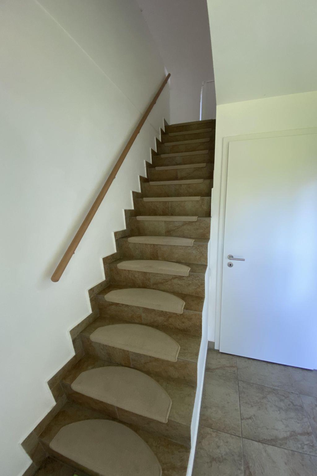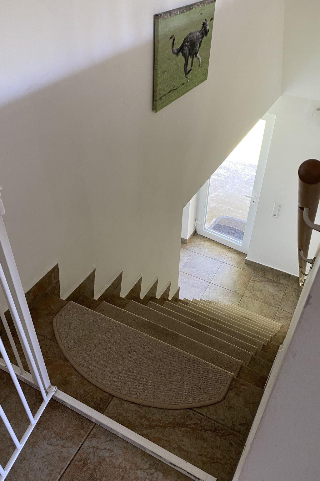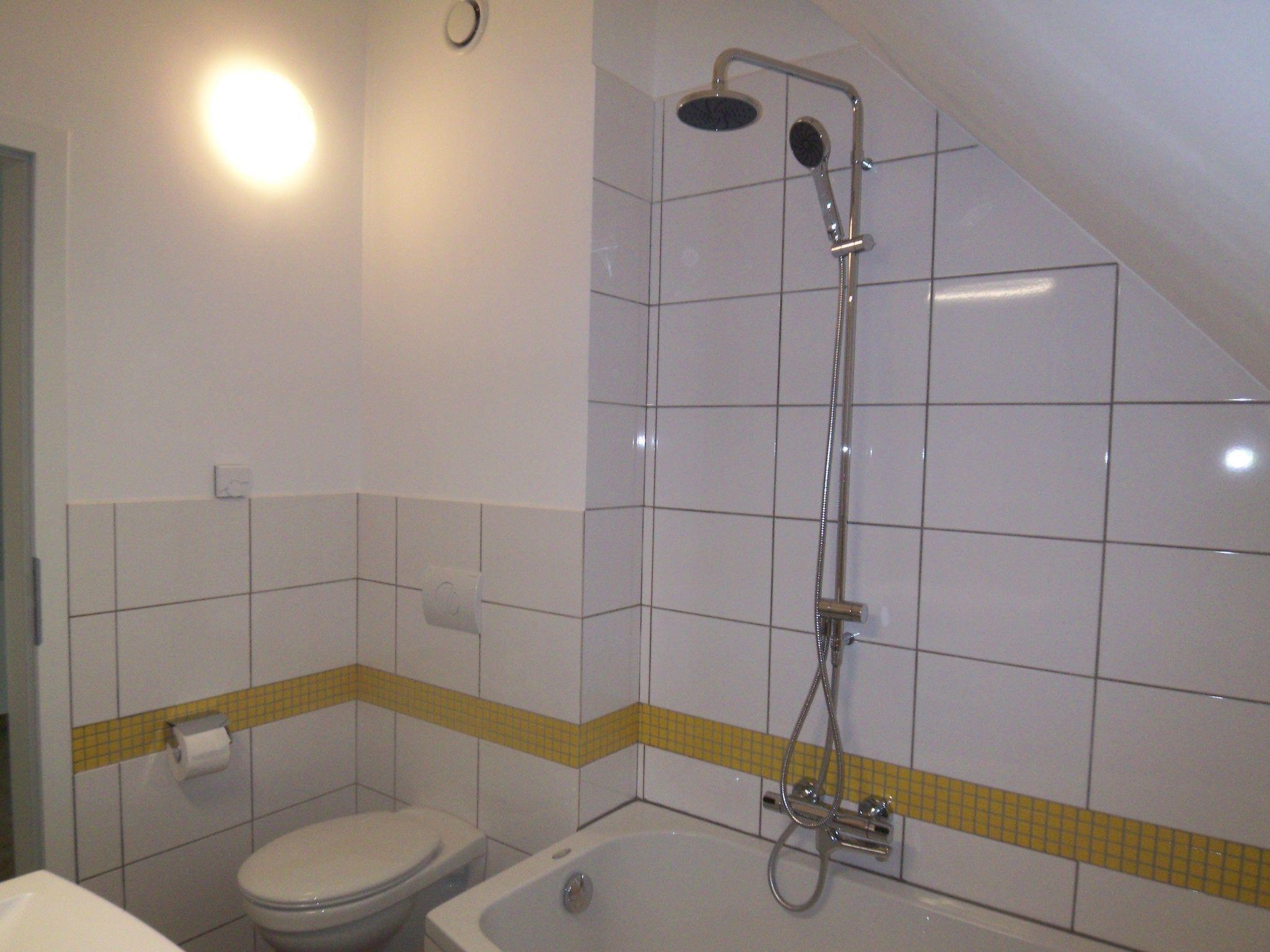 This 45m² modern and open studio with a living room-kitchen and a sleeping area is on the upper floor. The kitchen is equipped with a ceramic hob, oven, fridge with freezer compartment, dishwasher and Senseo pads coffee machine. The bathroom has a luxurious bath for two with a rain shower and a real glass shower screen. The sleeping area is furnished with a double bed (140 x 200cm) and a pull-out sofa bed (140 x 200cm) for two further people if required. The whole apartment has wireless Internet access and underfloor heating, as well as dog-friendly anti-slip tiles.