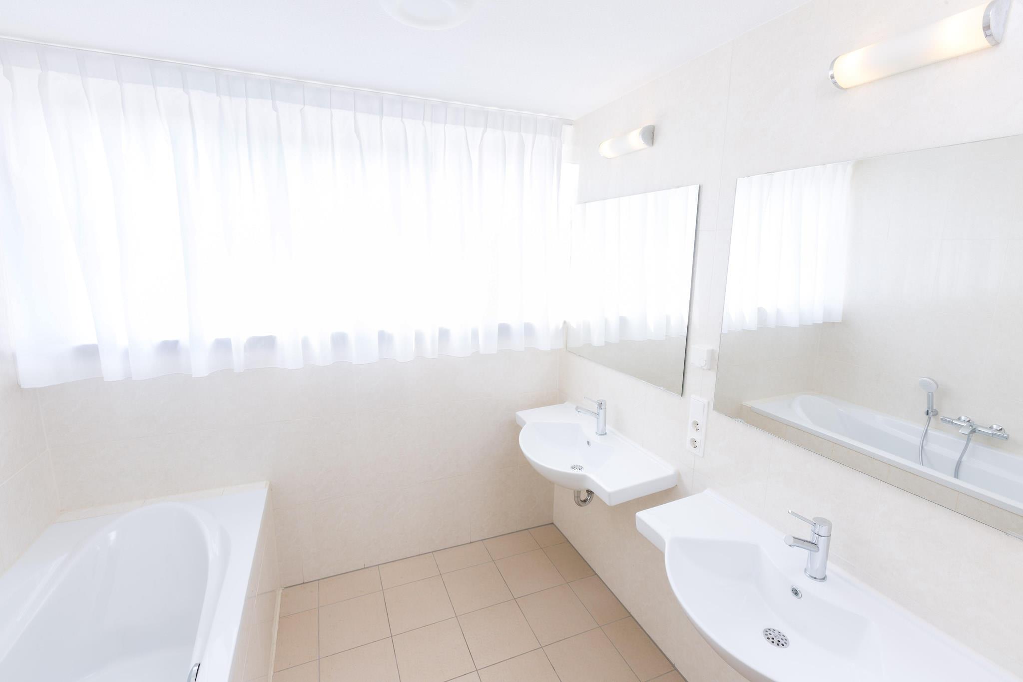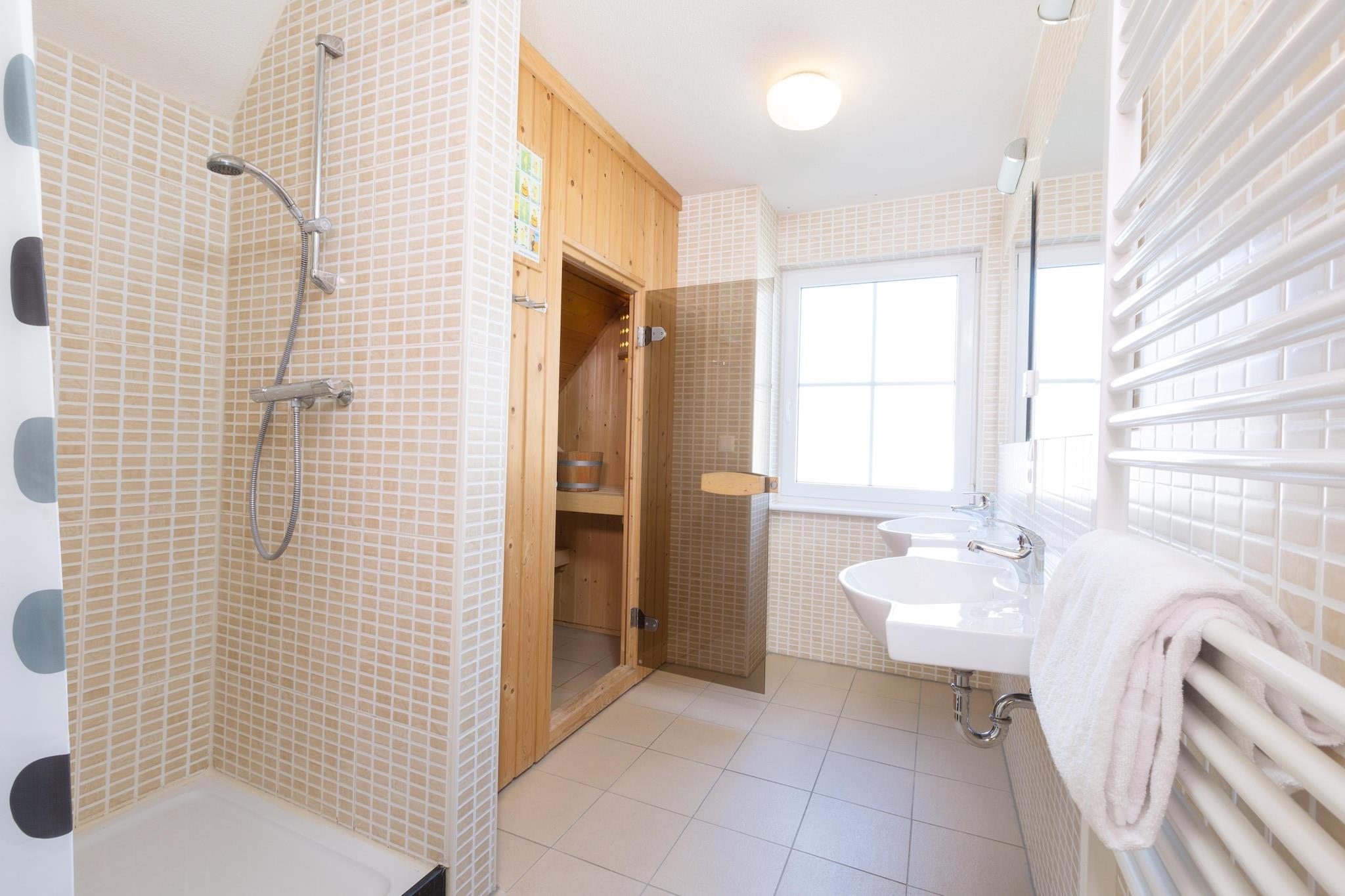 Denne semi-fritliggende villa på Ferienresort Bad Bentheim blander farver ved havet og charme på landet. Det er fordelt på to etager og har en stue med tv, et åbent køkken med kaffemaskine, mikroovn og opvaskemaskine samt et soveværelse i stueetagen med en-suite bruser. Ovenpå er der tre soveværelser med fleksible sovepladser, og to badeværelser har bruser med sauna og badekar. Opvarmning holder villaen hyggelig året rundt. Udenfor inviterer en terrasse, havemøbler og en privat have til afslapning, mens parkering og vaskefaciliteter gør længere ophold bekvemt. Villaen ligger i en pulserende feriepark nær den hollandsk-tyske grænse og tilbyder nem adgang til vandre- og cykelstier, Bad Bentheim Slot og nærliggende golfbaner. Kæledyrsejere kan nyde naturskønne parkstier og udpegede grønne områder til motion. Familier drager fordel af legepladser og fritidsrum på stedet, mens naturentusiaster kan udforske det omkringliggende landskab for fredelige gåture eller aktive eventyr. Lokale spisemuligheder omfatter tyske restauranter, bagerier og caféer inden for en kort køretur. Supermarkeder og butikker dækker daglige ting, mens offentlig transport og nærliggende togstationer gør det nemt at udforske Nordhorn, Enschede eller andre byer. Gæster nyder den perfekte blanding af hjemmekomfort og nem adgang til regionale attraktioner, hvilket gør denne villa ideel til familier, grupper og kæledyrsejere, der søger en aktiv, men afslappende ferie.