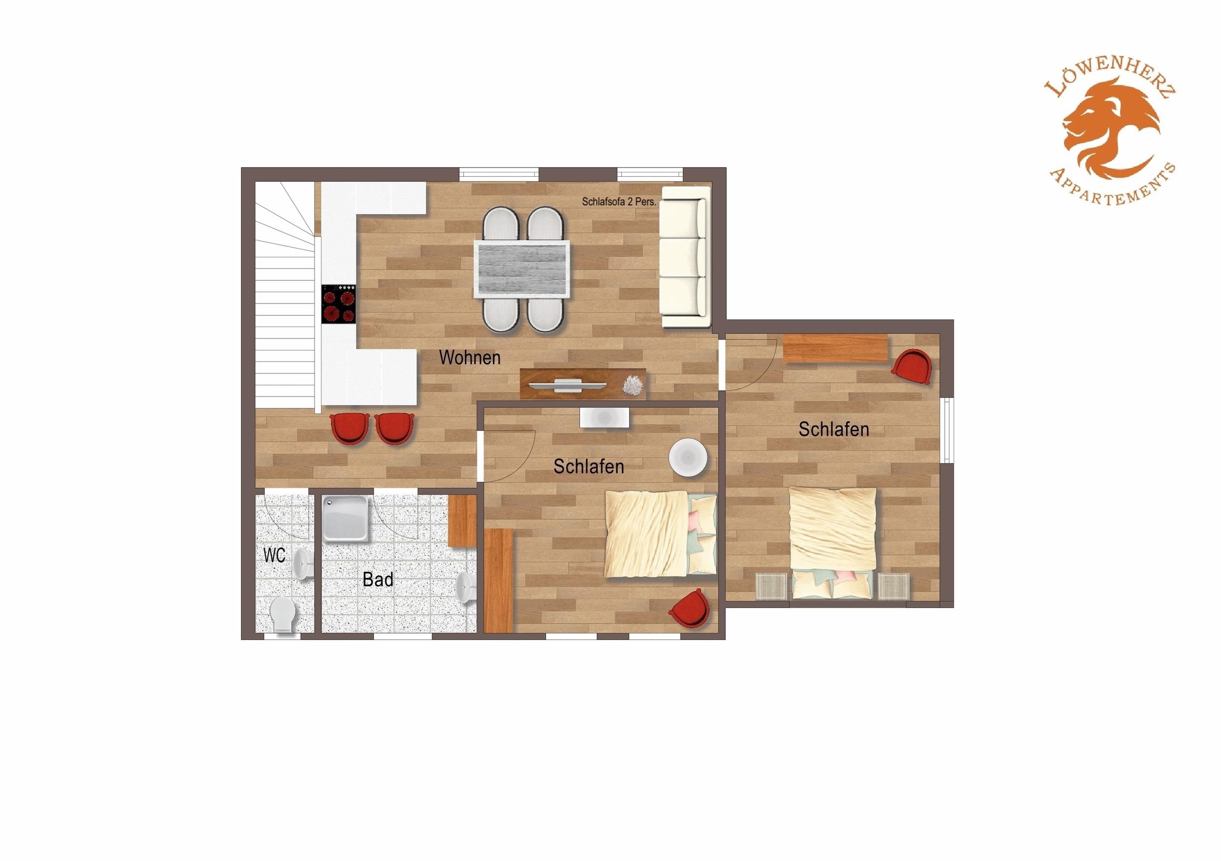 Das beliebte Löwenherz Appartement no.2 liegt ruhig und zentral im Kurort Bad Bentheim und bietet auf großzügigen 70 qm bis zu 6 Personen reichlich Platz. Unweit der Niederländischen Landesgrenze übernachten sie hier in einer modernen Ferienwohnung zwischen imposanter Burg und dramatischer Franzosenschlucht.