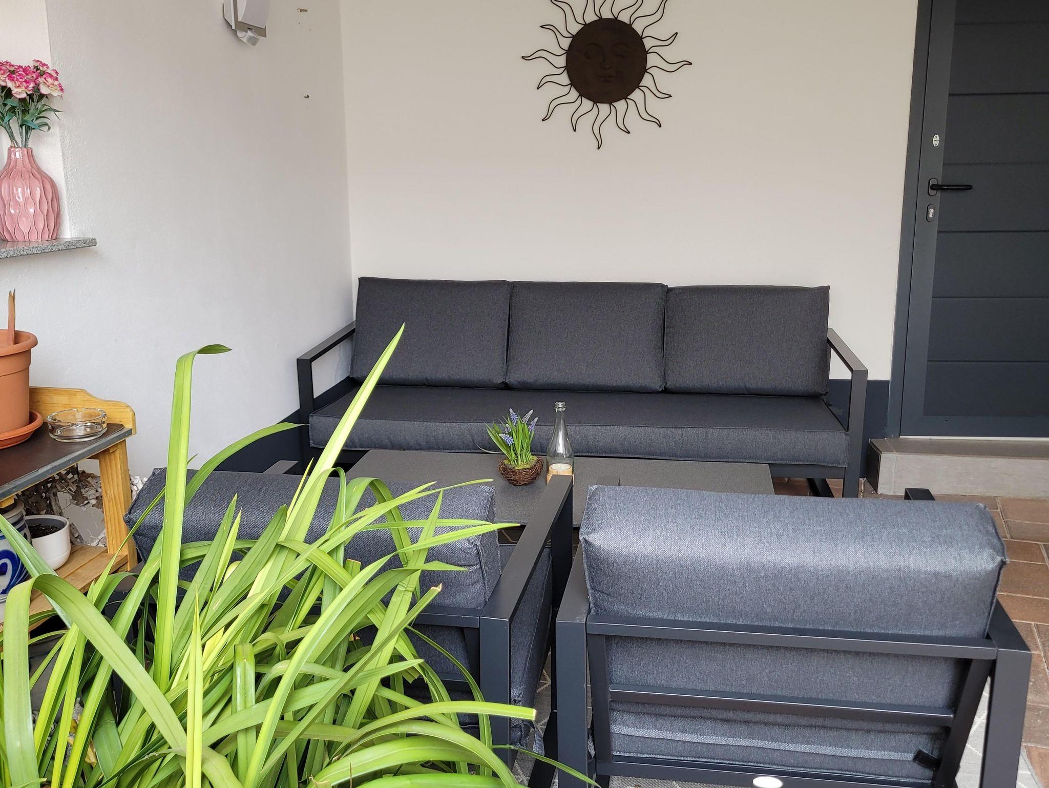 Im Hof befindet sich eine Sitzecke.
