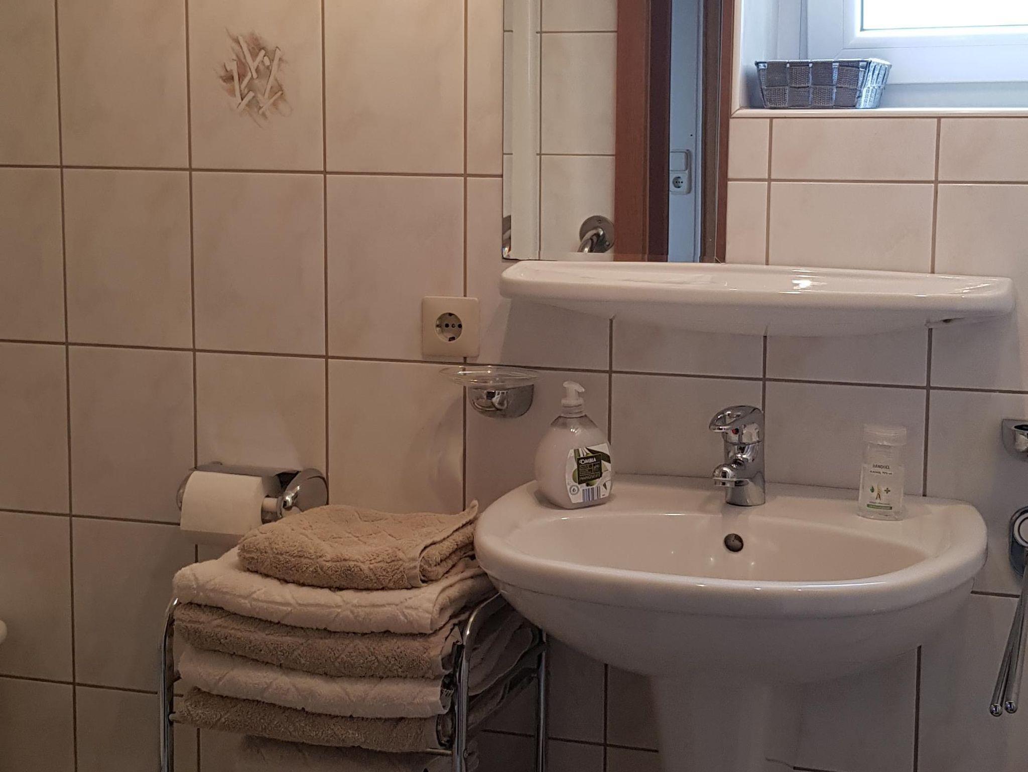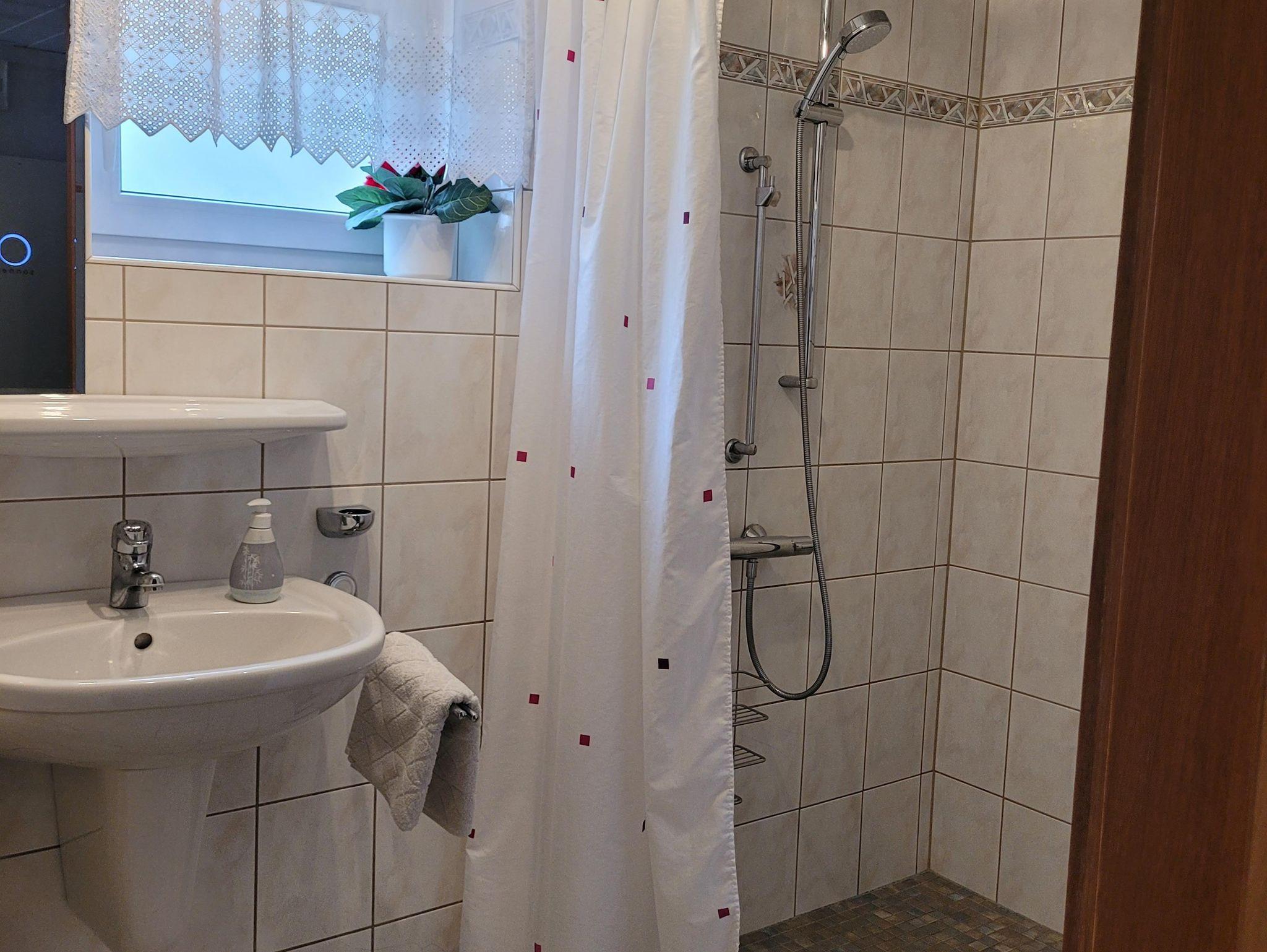 • ein Bad mit ebenerdiger Dusche, WC und Waschmaschine (gegen Gebühr)