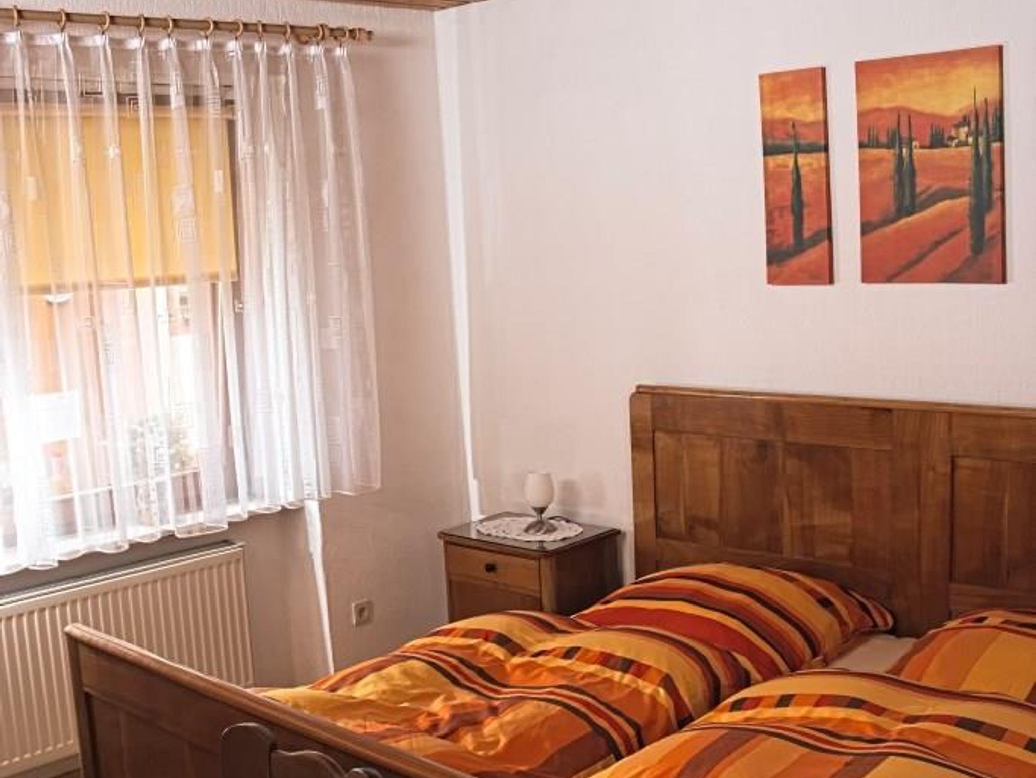 Unsere Ferienwohnung befindet sich im Erdgeschoss und bietet, mit ca. 45 qm, Platz für zwei bis drei Gäste. Sie besteht aus einem Doppelzimmer, einem kleinen Einzelzimmer, einer Wohnküche mit 2 Plattenherd, Couch, Eckbank, sowie Farbfernseher. Weiter gibt es einen geräumigen Flur und ein Badezimmer mit WC und ebenerdiger Dusche.