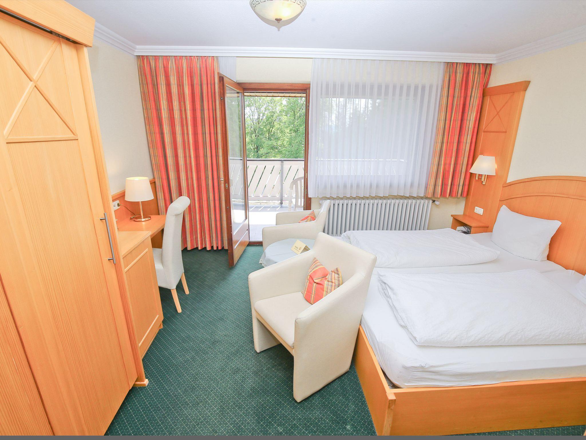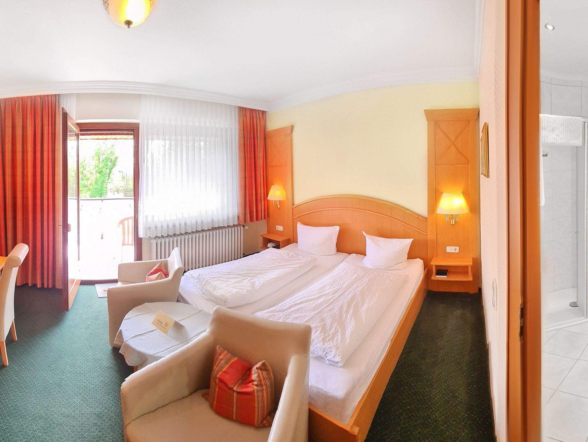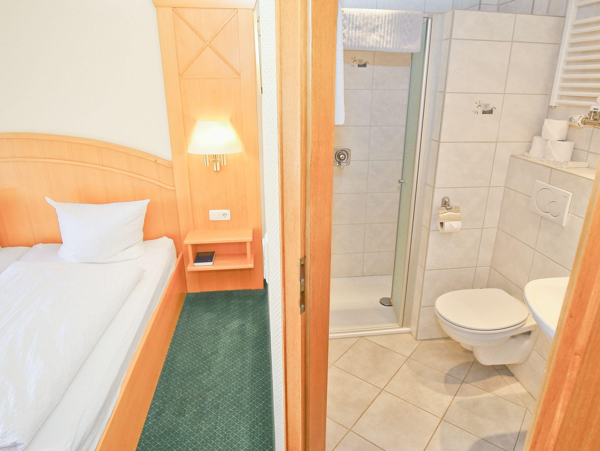 Klein, aber fein“, könnte die Beschreibung unseres Doppelzimmers €Waldblick“ lauten. Denn das Zimmer bietet allen Gästen einen herrlichen Blick auf die Wald- und Hügellandschaft Wittgensteins – der an der Südseite gelegene Balkon verspricht zudem Sonne pur über den gesamten Tag. Und sollte es doch einmal regnen, lassen sich vom Bett aus gemütlichen Stunden vor dem modernen Wandfernseher verbringen. Das Badezimmer ist in das Doppelzimmer integriert und saniert worden.