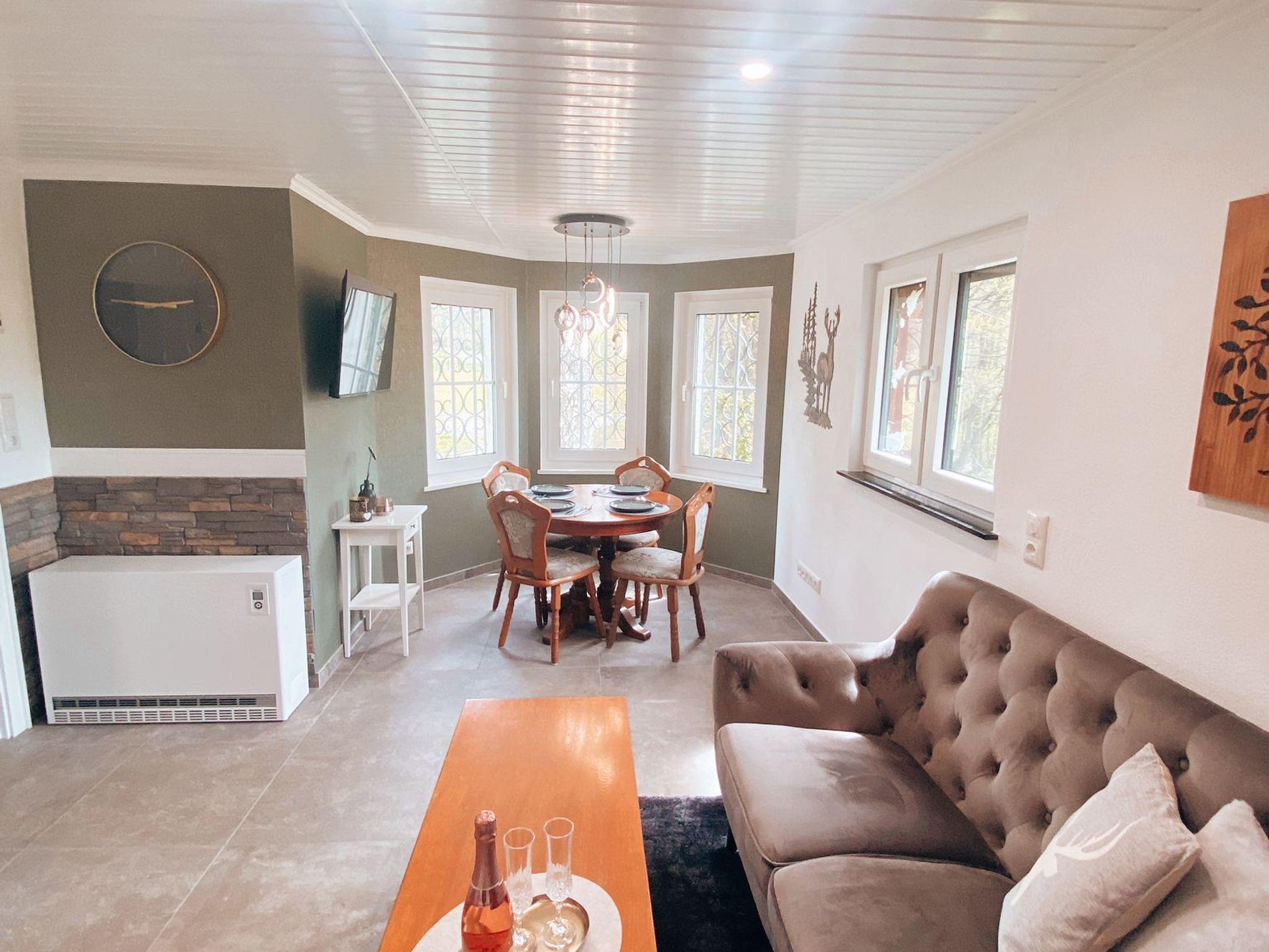 Unser neu renoviertes Ferienhaus mit 45m² Wohnfläche auf einer Ebene bietet Platz für 1-3 Personen. Das gemütliche Wohnzimmer mit Flachbild-TV und Essecke lädt zum verweilen ein.Die komplett ausgestattete Küche mit Geschirrspüler, Kühlschrank mit Gefrierfach, Herd, Wasserkocher, Toaster und Kaffeemaschine lassen kaum Wünsche offen. Das Badezimmer mit ebenerdiger Dusche runden das Gesamtbild ab. Alle Zimmer sind mit einer Fußbodenheizung ausgestattet. Vor allem im Sommer können Sie entspannte Grillabende auf unserer Terrasse verbringen. Bitte beachten Sie, dass keine Haustiere erlaubt sind. Die Parkplätze vor dem Haus können Sie kostenfrei nutzen.
