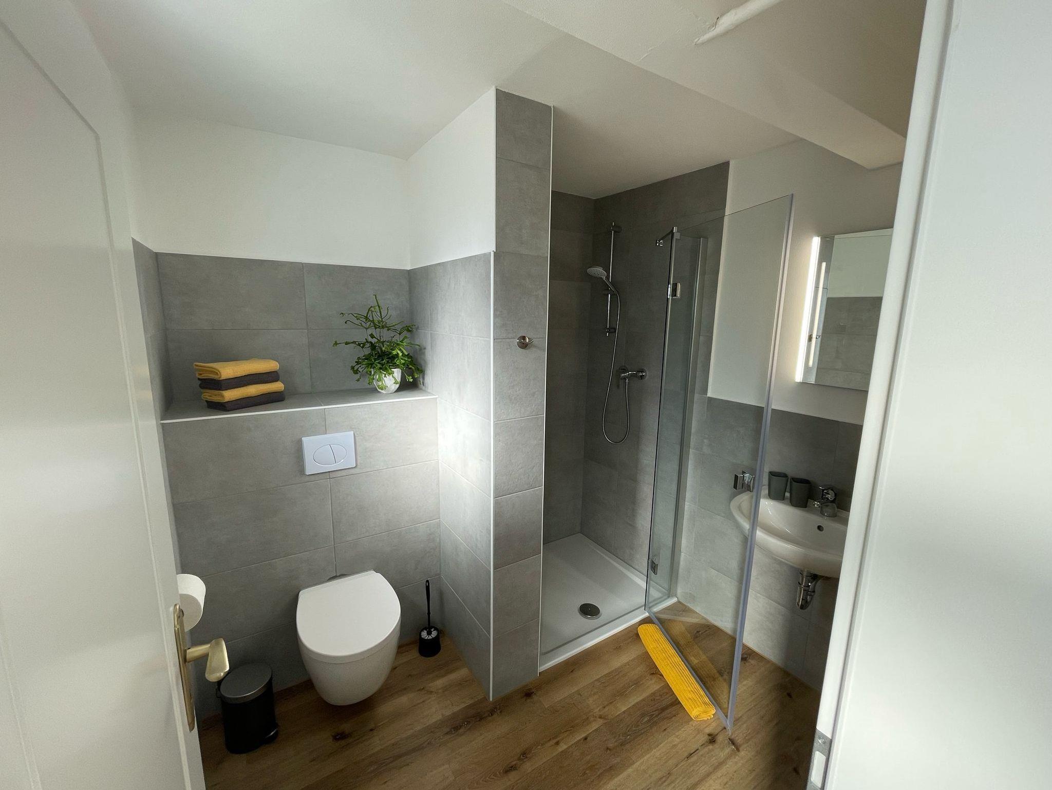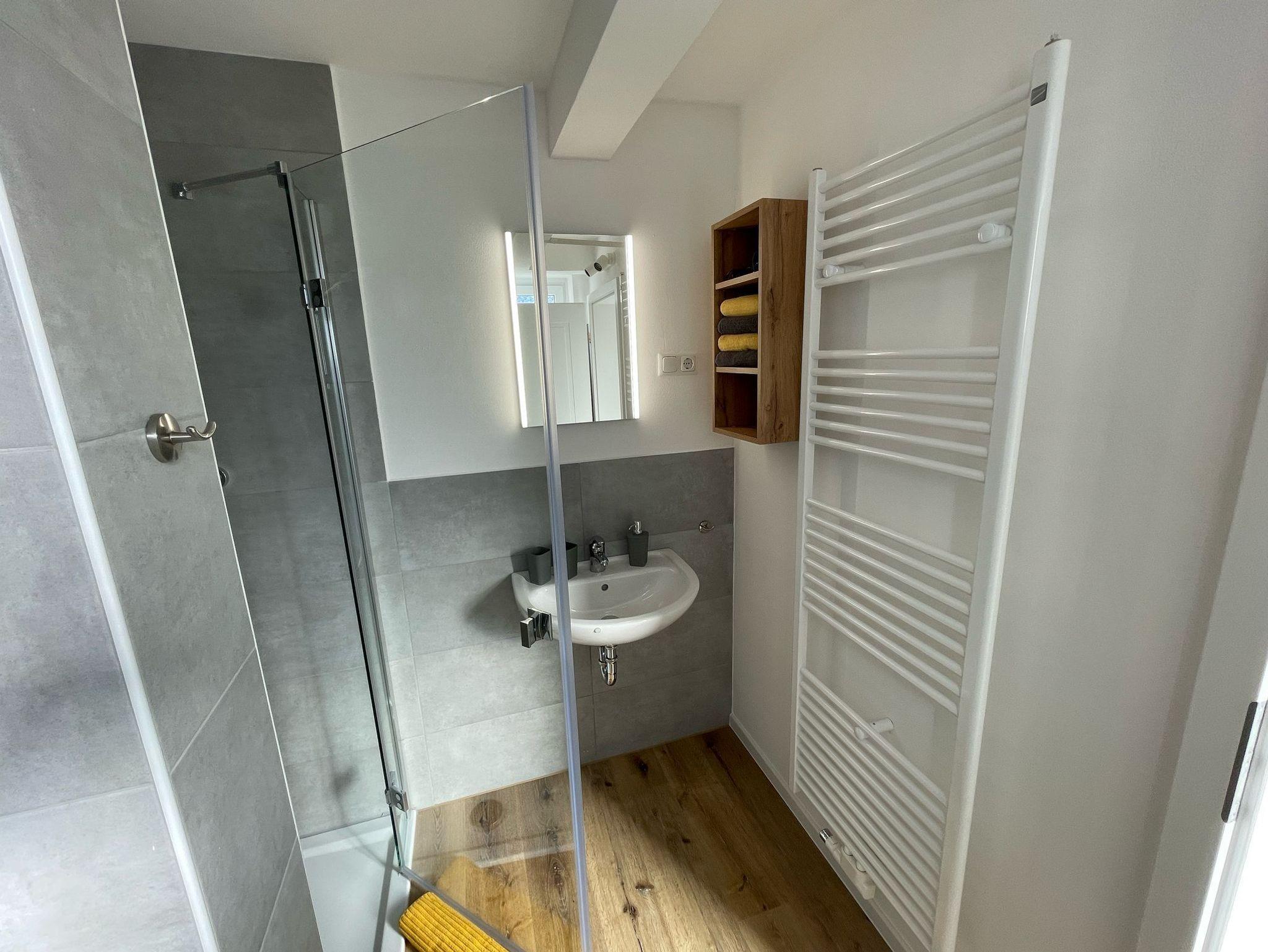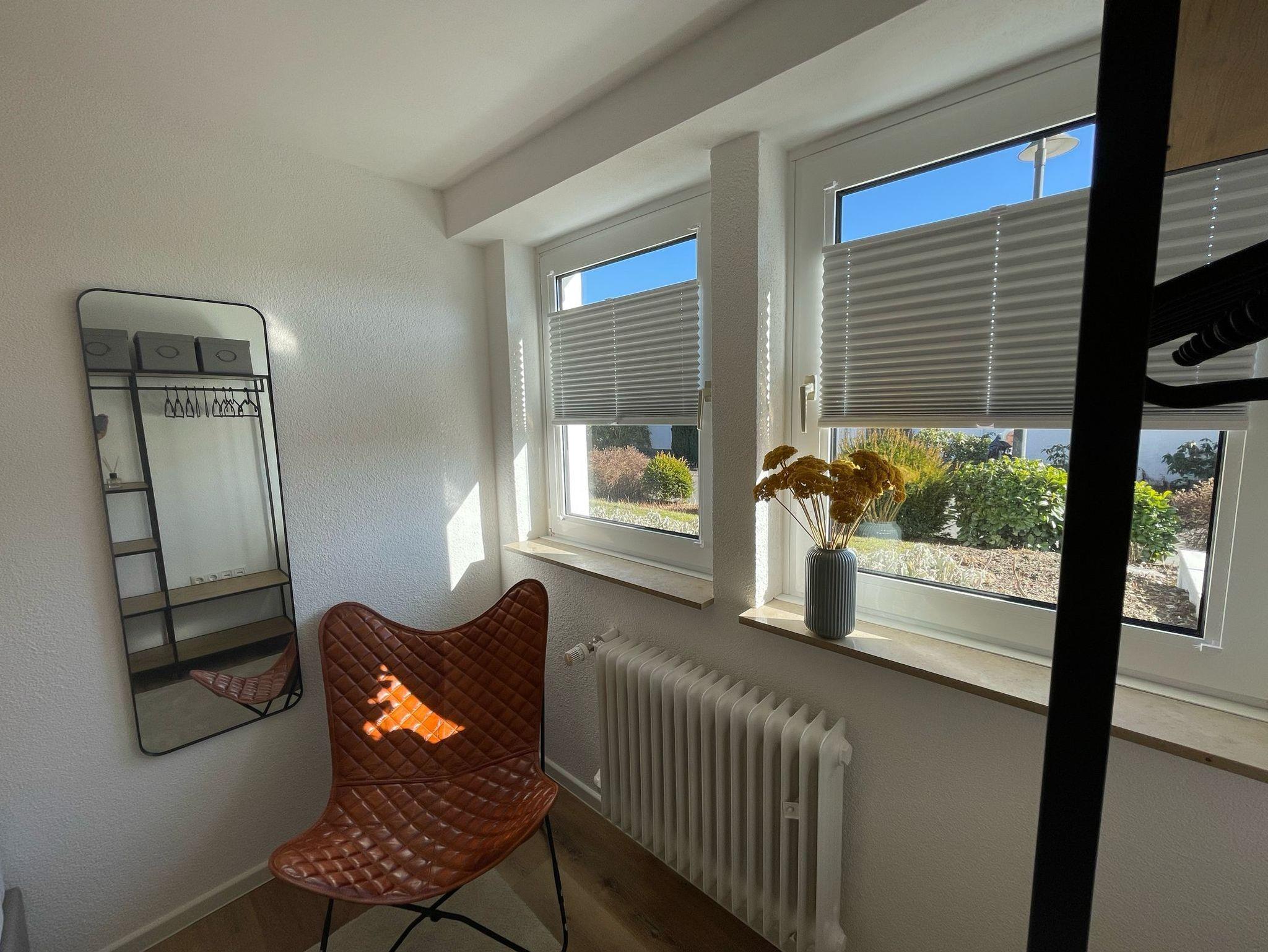 Unsere frisch renovierte Ferienwohnung besteht aus einem Schlafzimmer mit einem Doppelbett, einem Wohnzimmer mit Schlafcouch, einer voll ausgestatteten Küchenzeile mit einem Kühlschrank inkl. Gefrierfach, Kaffeemaschine, Wasserkocher, Toaster und Mikrowelle sowie einem Badezimmer mit einer barrierearmen Dusche, einem WC und einem Föhn. Handtücher und Bettwäsche werden zur Verfügung gestellt. In der „Bude 15“ gibt es außerdem ein Sat-TV, kostenfreies WLAN, eine kleine Terrasse und einen Parkplatz direkt vor der Wohnung – auf Wunsch ist auch Garagennutzung möglich. An- und Abreisezeiten sind nach Absprache. Die „Bude 15“ ist eine Nichtraucherwohnung. Haustiere sind ebenfalls nicht erlaubt.