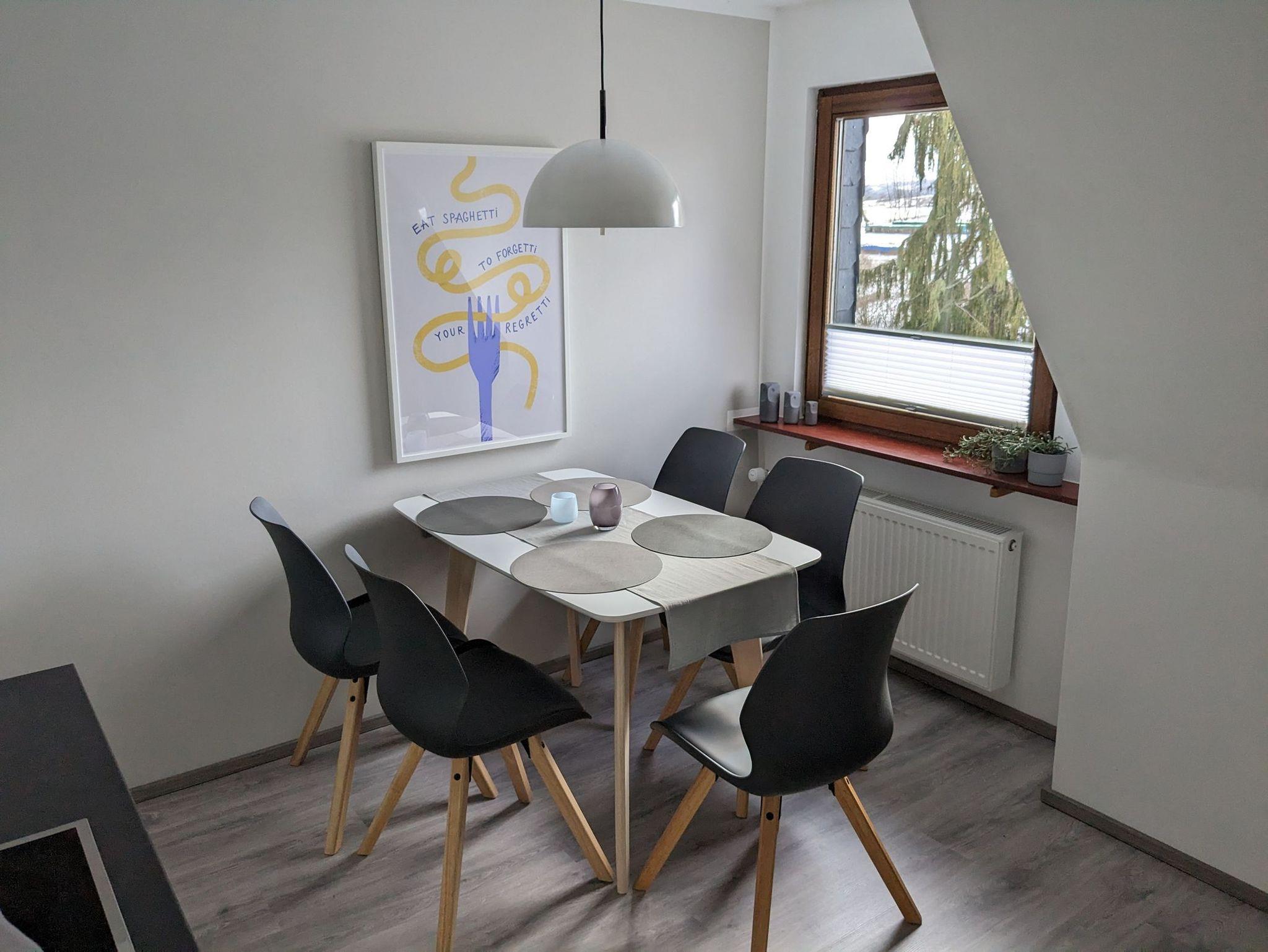 Die komplett renovierte 95 qm 4 Sterne Ferienwohnung befindet sich im Dachgeschoss und bietet eine moderne Einrichtung in heller und ansprechender Atmosphäre. Sie verfügt über 2 Schlafzimmer, ein Tageslichtbad mit Dusche, einen offenen Wohn- Essbereich mit Kachelofen, eine Küche und eine Vorratskammer. Vom Wohnzimmer aus gelangt man zur Loggia, welche Richtung Süden ausgerichtet ist. Der perfekte Ort für laue Sommerabende mit einem Glas Wein. In einer eigens eingerichteten Grillecke, können regionale Spezialitäten der nahegelegenen Hofschlachterei und Milcherei ausprobiert werden.