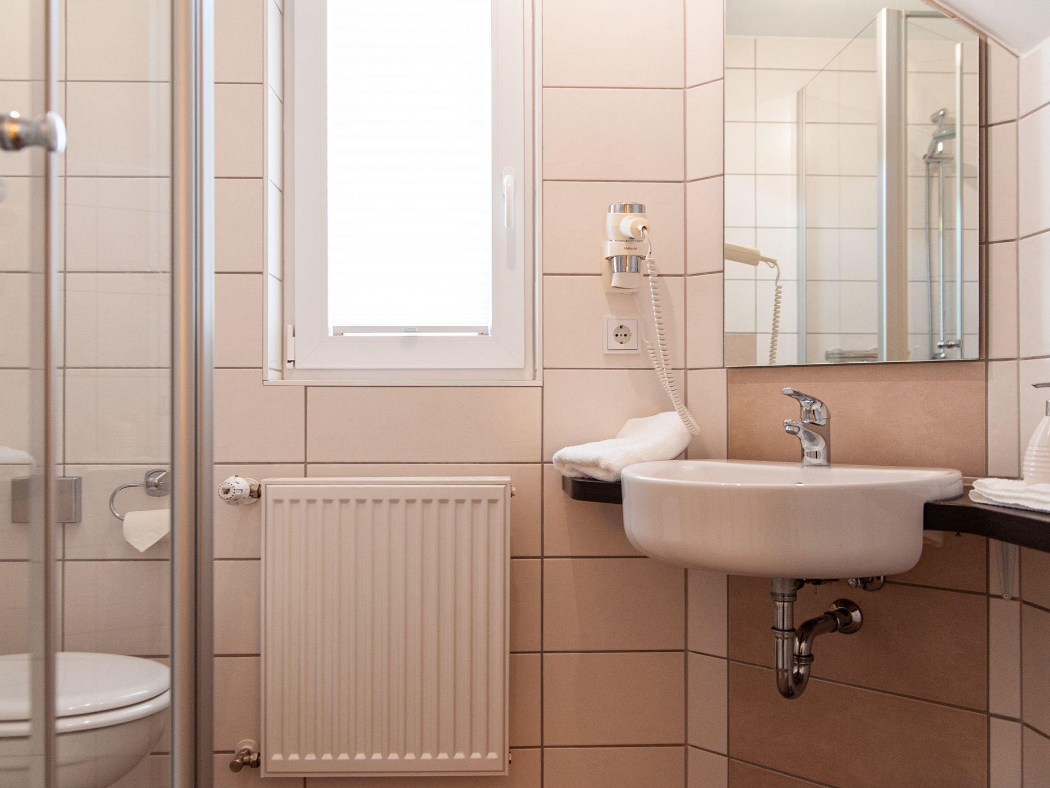 Gemütliches Zimmer mit 2 Einzelbetten in einem Raum. Ausgestattet mit zwei Fernsehen und modernem kleinen Badezimmer. Zimmer mit Blick auf umliegende Wiesen und Wald. Handtücher und Bettwäsche sind inklusive.