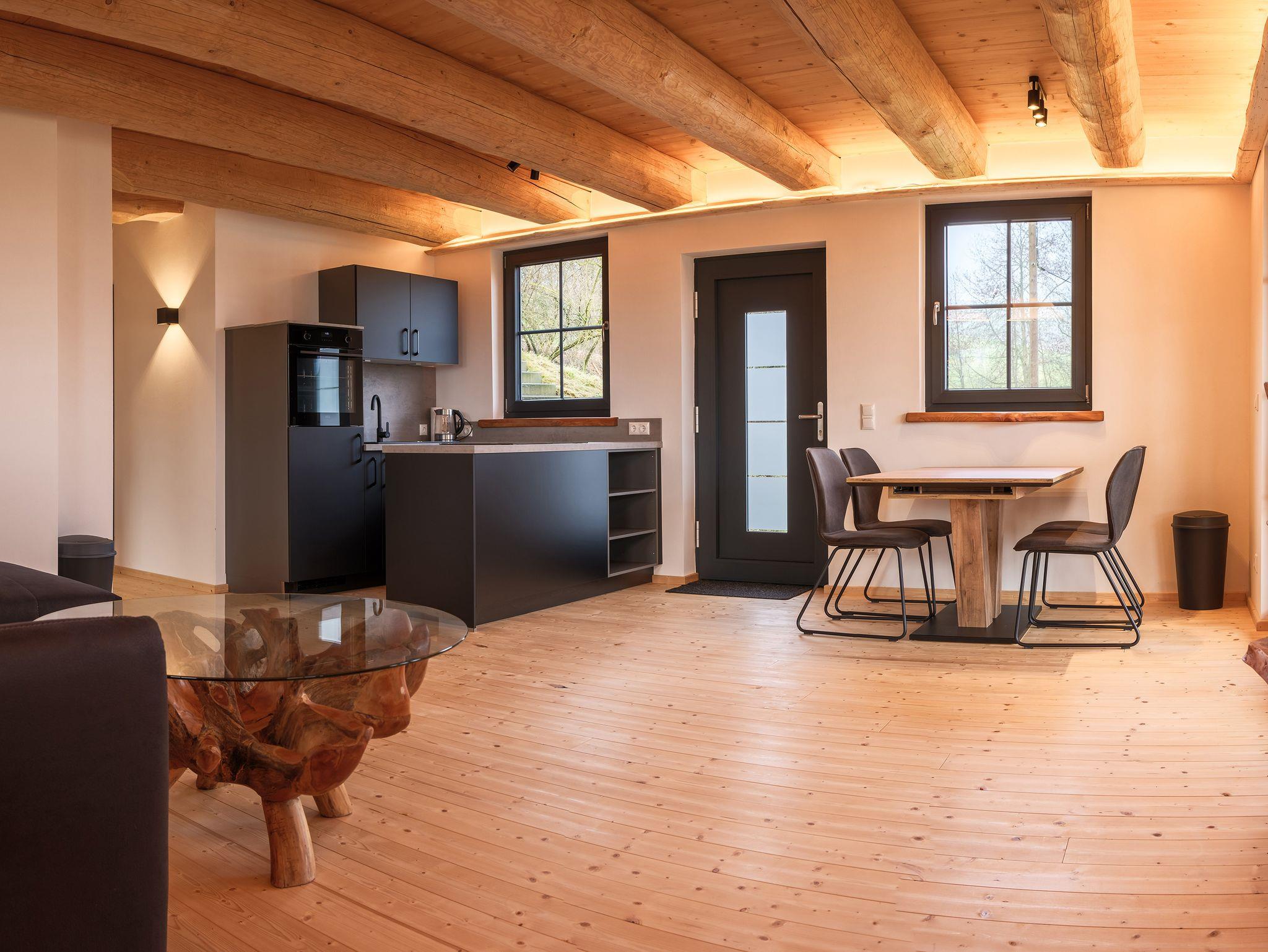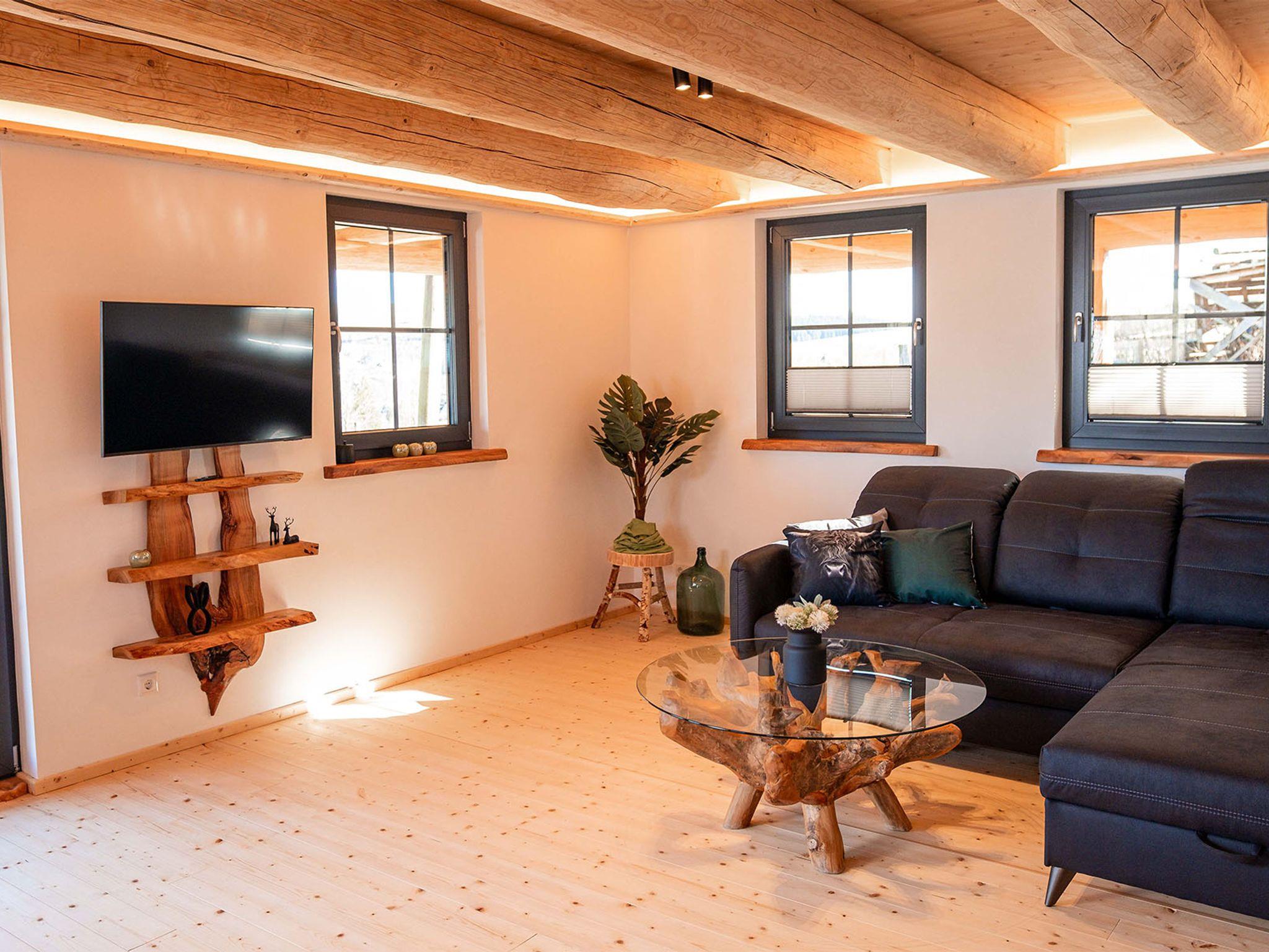 Die Kleine Fichte ist die charmante, ca. 60 qm große Einliegerwohnung unseres liebevoll handgefertigten Naturstammblockhauses Fichtenhaus. Hier erwartet Sie eine behagliche Atmosphäre mit modernem Komfort – perfekt für eine erholsame Auszeit in einem Wohlfühlambiente mit Komfort.