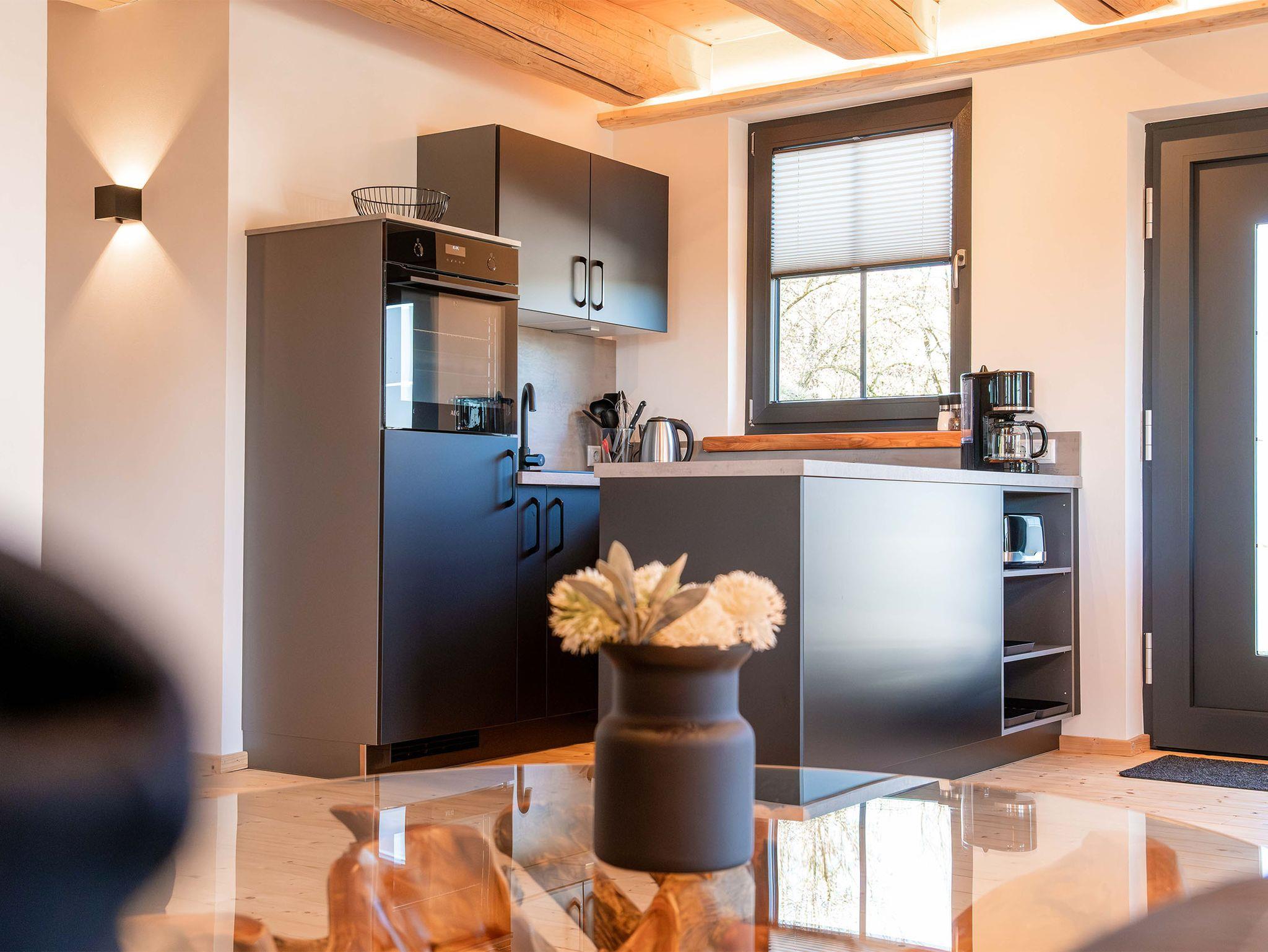 Die voll ausgestattete Küche mit Kühl-Gefrierkombination, Backofen, Geschirrspüler, Toaster, Wasserkocher, Kaffeemaschine und Induktionskochfeld bietet alles, was Sie für kulinarische Erlebnisse benötigen. Der angrenzende Essbereich sorgt für gesellige Stunden, während der gemütliche Wohnbereich, mit einer großen ausziehbaren Couch und TV, Entspannung pur verspricht.