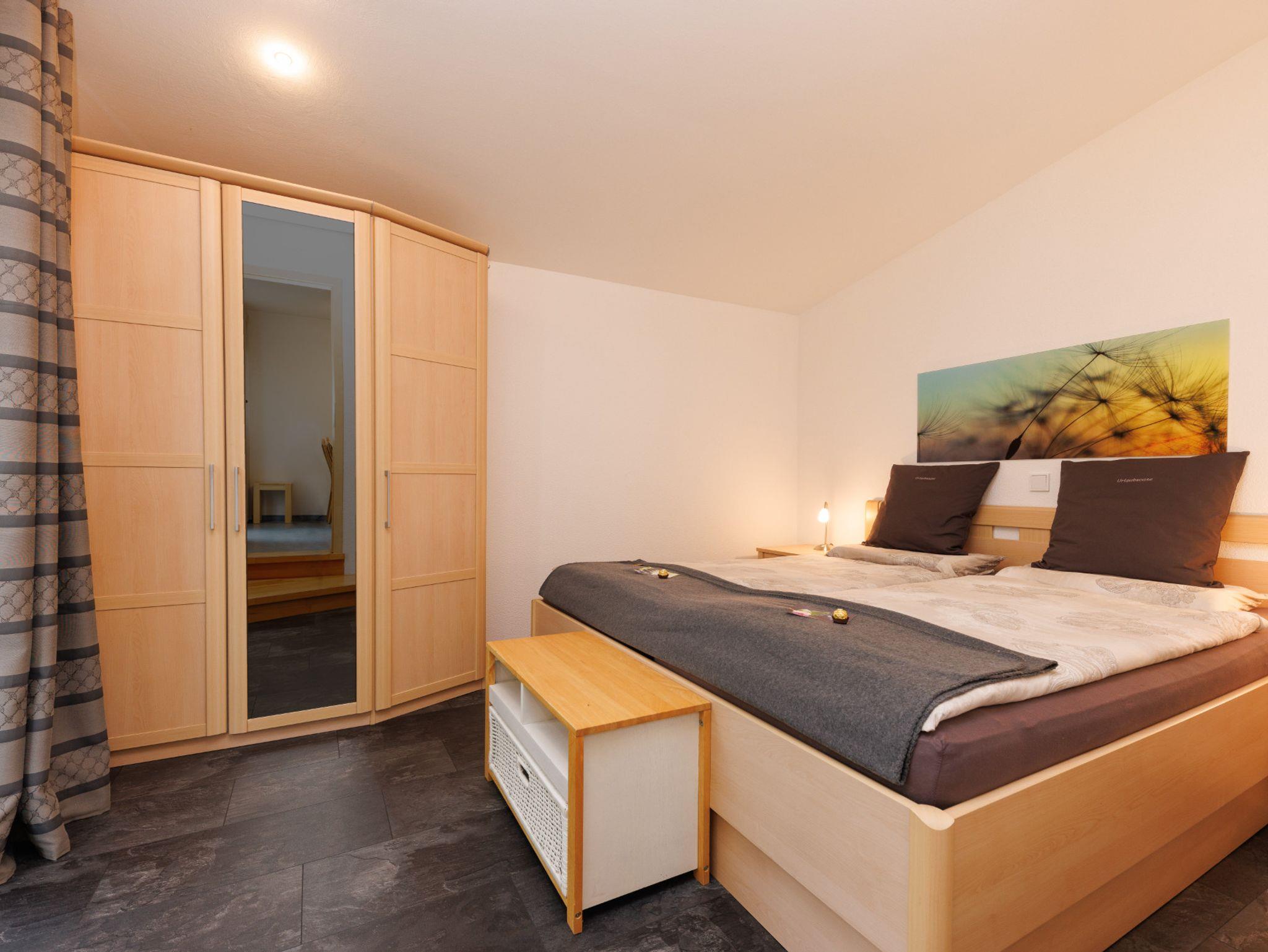 Das Schlafzimmer ist hell und freundlich eingerichtet.