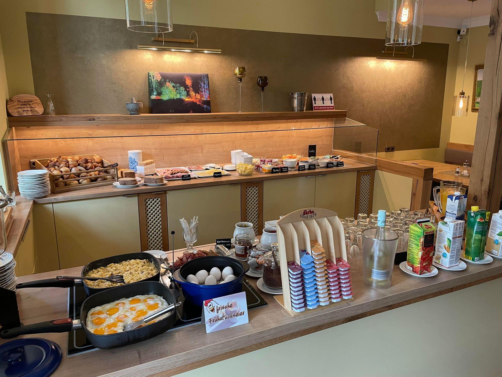 Der Start in den Tag beginnt für Sie in unserem Wintergarten mit einem herrlichen Blick auf die Promenade am Üssbach. Hier verwöhnen wir Sie mit einem Frühstücksbuffet, welches keine Wünsche offen läßt. Bei schönem Wetter auch auf unsere Sommerterrasse.