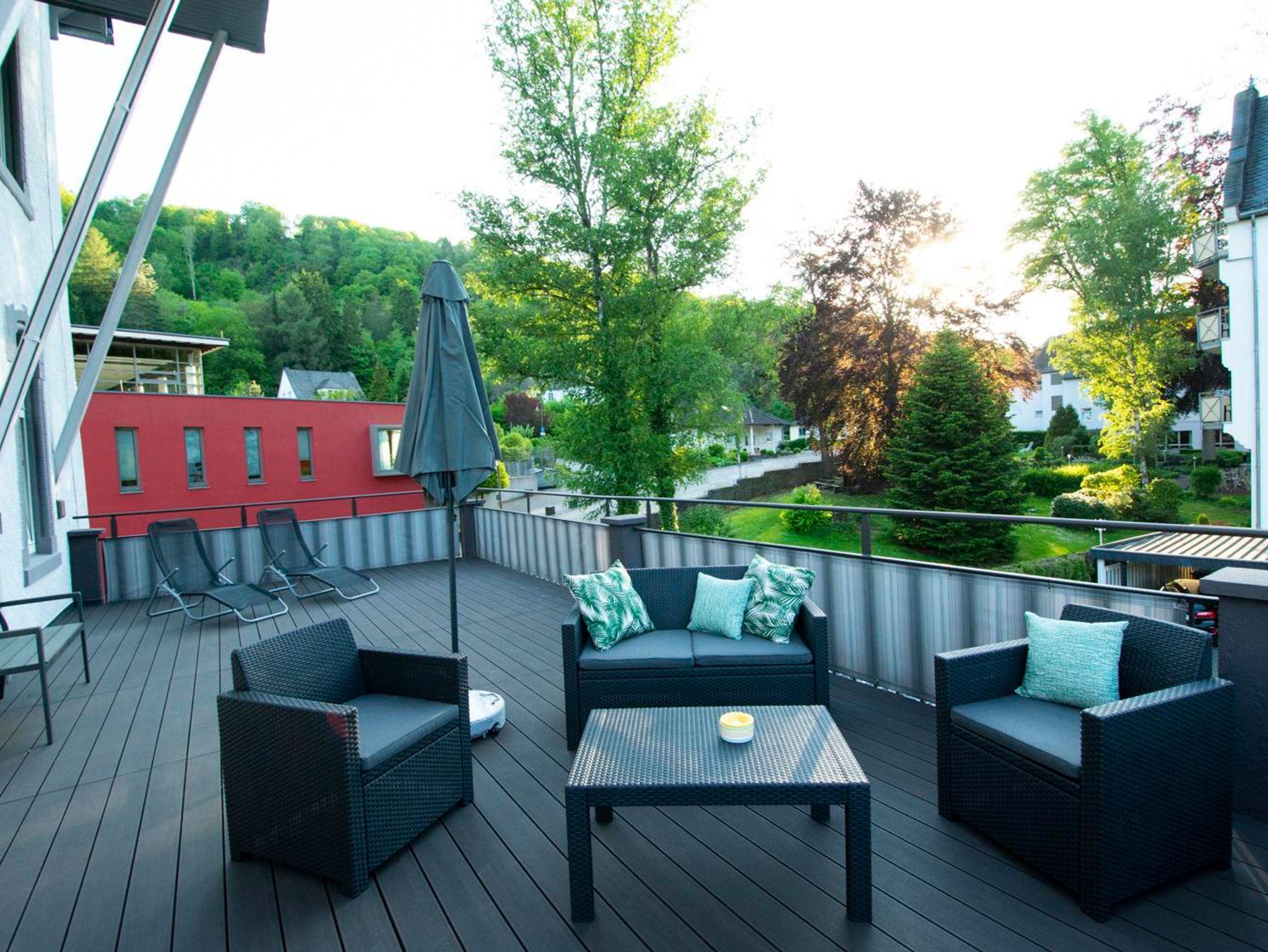 Ihr Vorteil: Sie sind in 1 Minute am Eingang der Wellnessoase Vulkaneifel Therme, in 2 Minuten im Wald auf einem der zahlreichen Wanderwege und haben von Ihrem Balkon einen Rundumblick über den beschaulichen Ort, seinen historischen Gebäude und den herrlichen Wald, sodass es Lust macht, die nächsten Tage mit Erholung und Aktivitäten in der Natur zu planen!