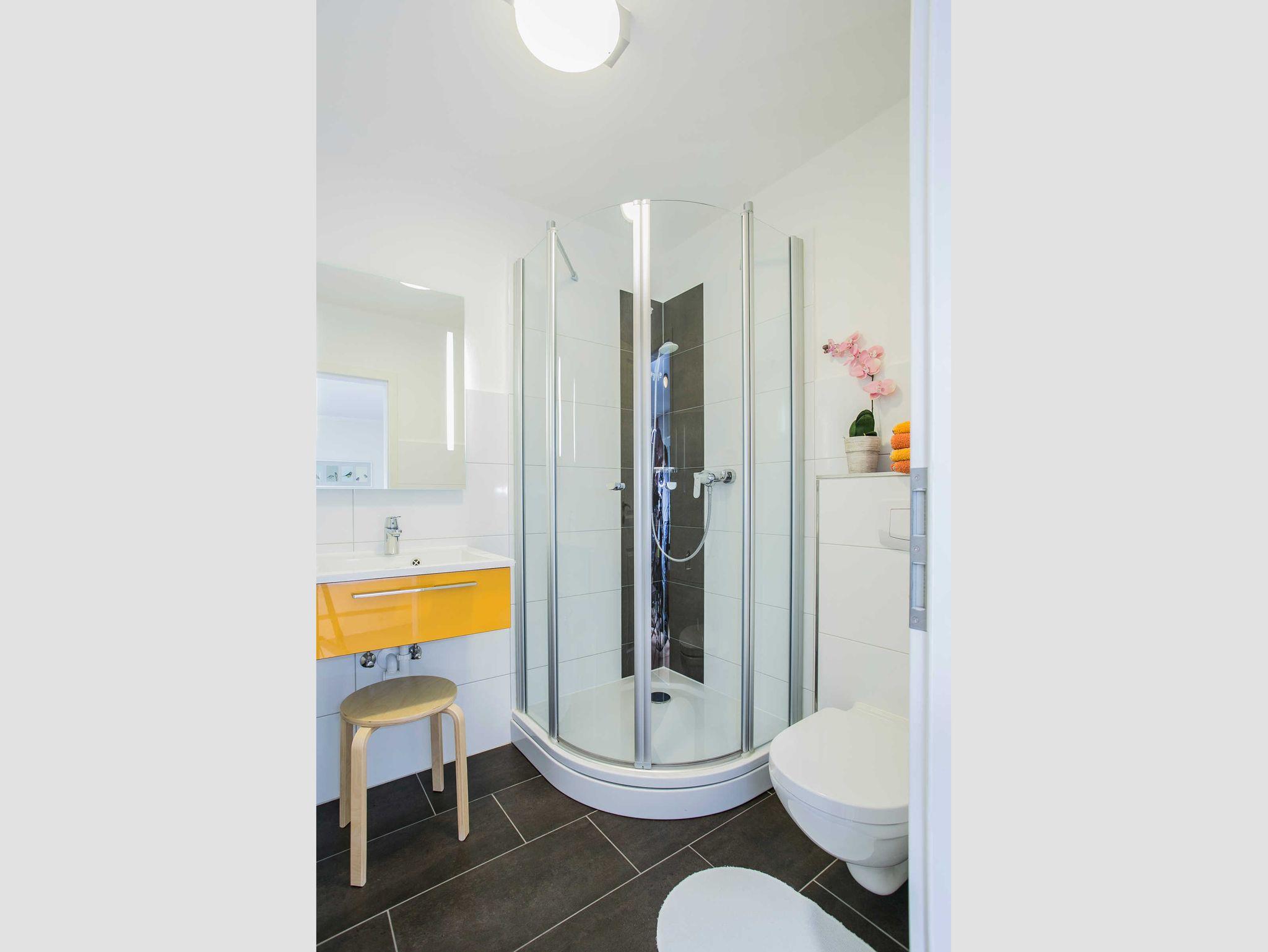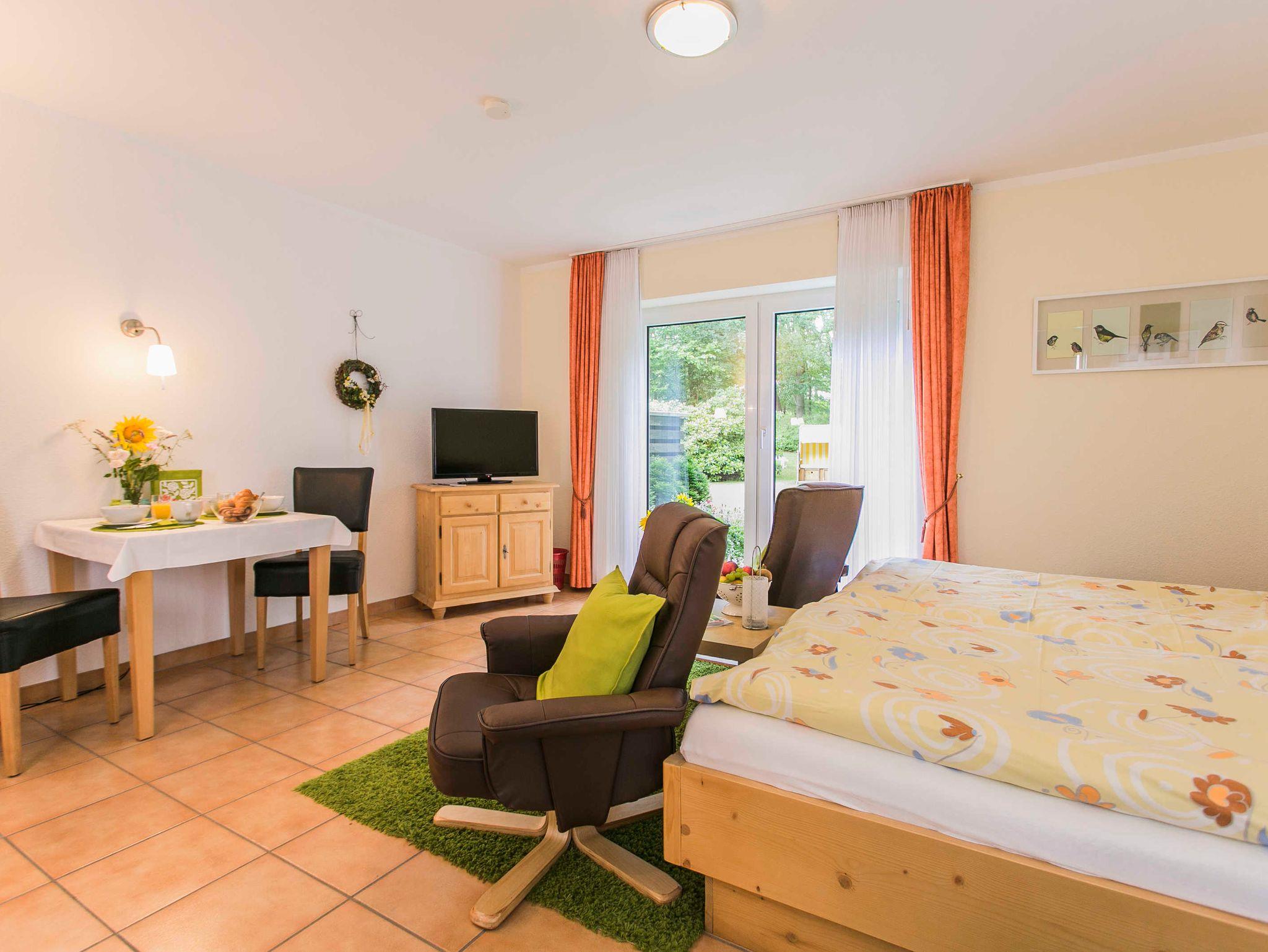 • 1 Wohn-Schlafraum mit Doppelbett in Komforthöhe (1,80 x 2,00 m),
