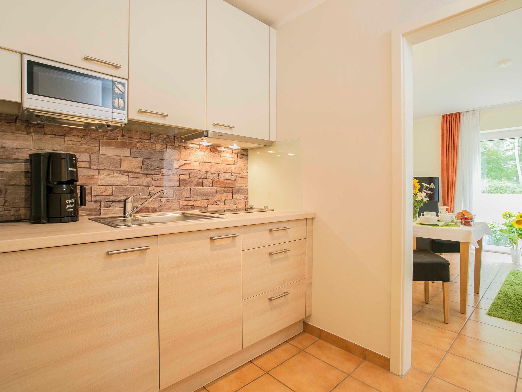 • 1 separate Pantryküche mit Kochfeld, Kühlschrank/Gefriermöglichkeit, Spüle, Kaffeemaschine, Töpfe, Geschirr und Besteck, Geschirrtücher