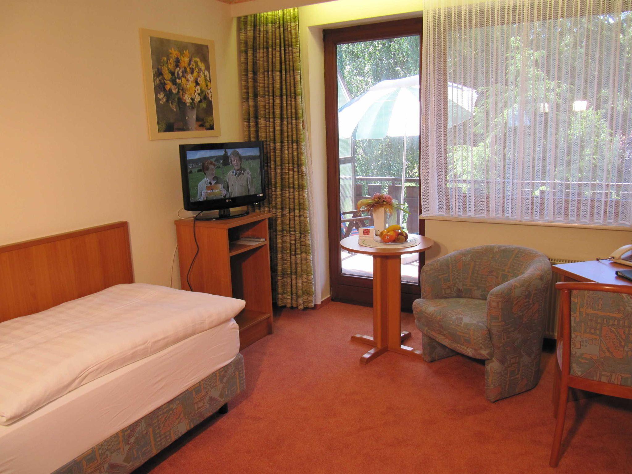 • Standard-Einzelzimmer (20 qm) mit Balkon bzw. Terrasse zur Westseite,
