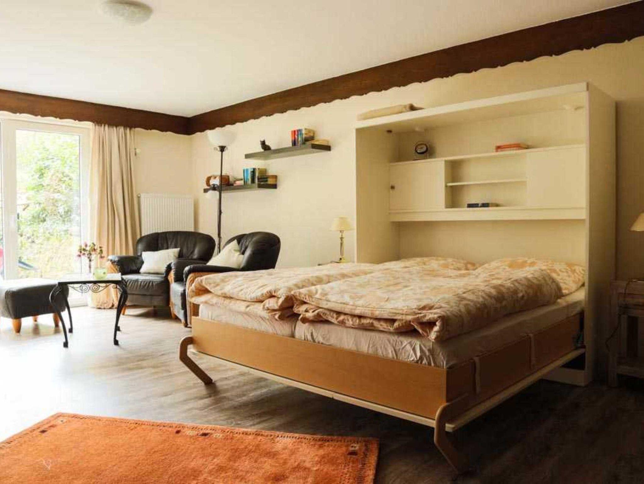 • 1 Wohnraum mit 1 Schrankbett für 2 Personen (160x200 cm) und 2 Sesseln,
