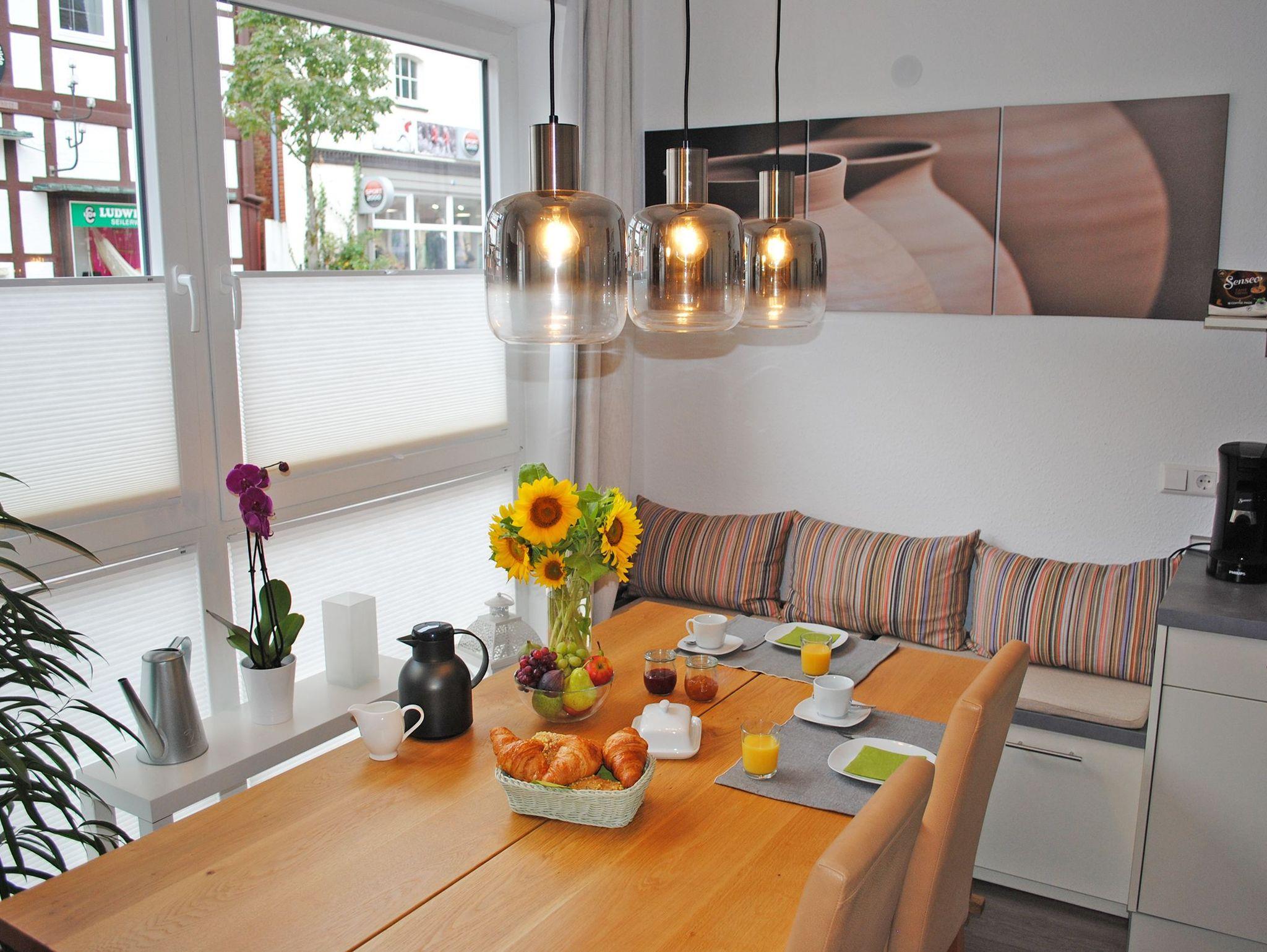 Die 60 qm Ferienwohnung im Erdgeschoss eines Mehrparteienhauses ist in der Fußgängerzone der Bad Bevenser Altstadt ruhig gelegen. Im Jahr 2023 wurde die Wohnung komplett saniert. Sie bietet mit zwei Schlafzimmern Platz für bis zu vier Personen. Darüber hinaus erwartet die Gäste eine geräumige Wohnküche mit einem Esstisch und einer großzügigen Sofalandschaft. Das Bad ist barrierearm mit einer ebenerdigen Dusche ausgestattet. Darüberhinaus verfügt die Wohnung über einen Abstellraum mit einer Waschmaschine. Im begrünten Hof steht den Gästen der Wohnung ein eigener Terrassenplatz mit Mobiliar zur Verfügung. Der eigene PKW kann in der angrenzenden Straße geparkt werden. Ein Parkausweis wird den Gästen zur Verfügung gestellt. Ihre Fahrräder können Gäste im abschließbaren Innenhof trocken unterstellen.