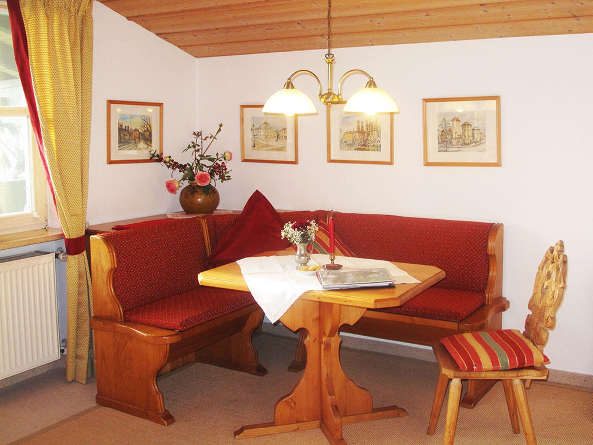 Ferienwohnung in Parterre für 2 Personen mit Doppelbett mit getrennten Matratzen und offenem Fußende und Schlafcouch. Terrasse am Zimmer. Küche mit Kaffee und Teekocher, Kaffeemaschine, Mikrowelle, Sitzgelegenheit, Toaster, Essecke, Kühlschrank. Bettwäsche und Handtücher vorhanden, Tisch- und Küchenwäsche vorhanden. Badezimmer mit Fenster, Dusche, separates WC und Fön. WLAN, CD-Player, Faxanschluss, Fernseher, Standspiegel, Telefon im Zimmer, Kosmetikspiegel, Nichtraucherzimmer. Bei uns wohnen Sie inmitten eines wun¬derschönen Parks. Rottal Terme, Ortskern und Golfpark errei¬chen Sie zu Fuß in wenigen Minuten. Ein heimischer Schreiner hat unsere Ferienwohnungen in warmen Fichtenholz stilvoll ausgestattet, wir haben sie farblich harmonisch dazu liebevoll eingerichtet. Dusche/WC wie Wohn- und Schlafzimmer sind separat. Terminservice für Arzt- und Therapiebesuche. Wandern und Walken beginnen Sie vor der Tür. Fahrräder stellen wir gratis. Und ein paar Extras verraten wir Ihnen noch nicht...