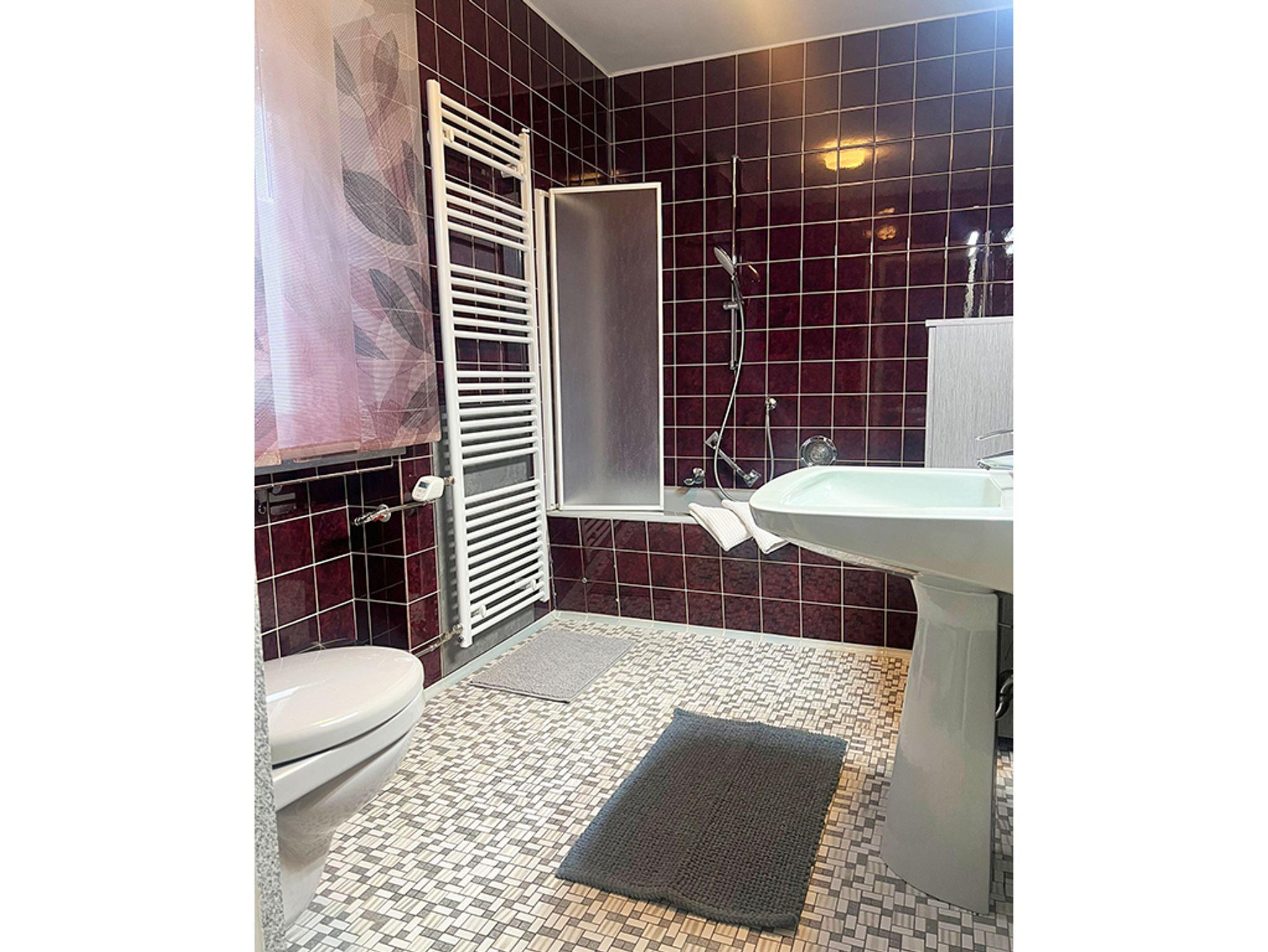 Tageslicht-Bad mit Badewannen-Duschtrennwand, Handtuch-Heizkörper, inkl. Handtücher (nur zum Gebrauch in der Ferienwohnung), Haartrockner,