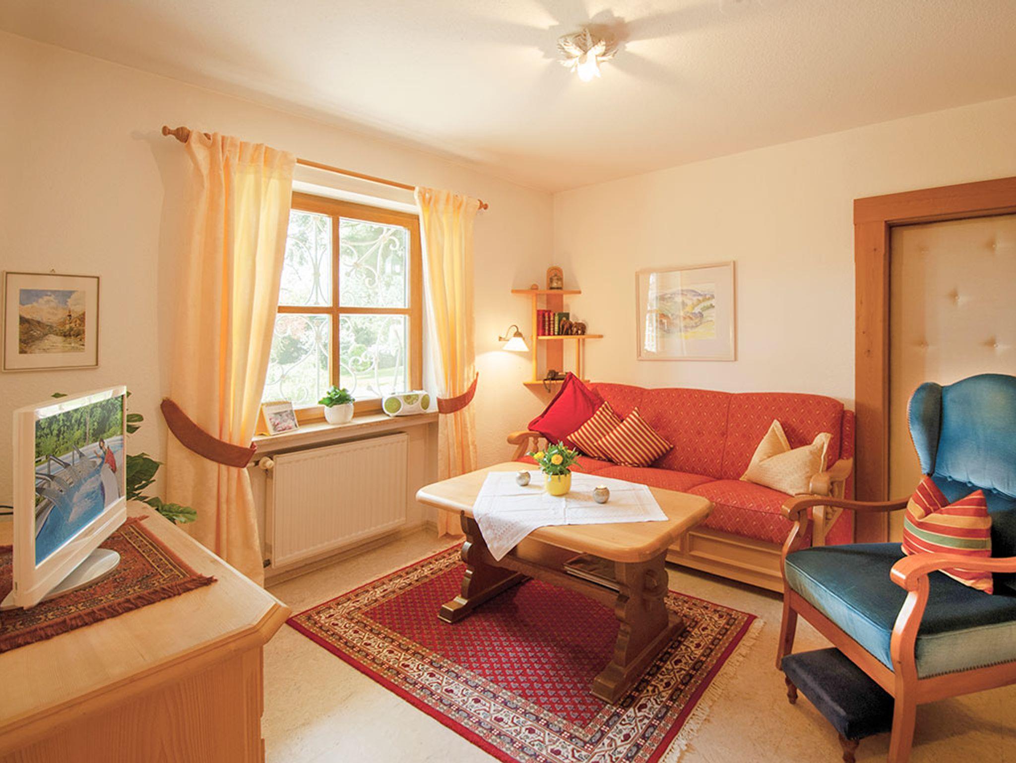 Ferienwohnung in Parterre für 2 Personen mit Doppelbett mit getrennten Matratzen und offenem Fußende und Schlafcouch. Terrasse am Zimmer. Küche mit Kaffee und Teekocher, Kaffeemaschine, Mikrowelle, Sitzgelegenheit, Toaster, Essecke, Kühlschrank. Bettwäsche und Handtücher vorhanden, Tisch- und Küchenwäsche vorhanden. Badezimmer mit Fenster, Dusche, separates WC und Fön. WLAN, CD-Player, Faxanschluss, Fernseher, Standspiegel, Telefon im Zimmer, Kosmetikspiegel, Nichtraucherzimmer. Bei uns wohnen Sie inmitten eines wun¬derschönen Parks. Rottal Terme, Ortskern und Golfpark errei¬chen Sie zu Fuß in wenigen Minuten. Ein heimischer Schreiner hat unsere Ferienwohnungen in warmen Fichtenholz stilvoll ausgestattet, wir haben sie farblich harmonisch dazu liebevoll eingerichtet. Dusche/WC wie Wohn- und Schlafzimmer sind separat. Terminservice für Arzt- und Therapiebesuche. Wandern und Walken beginnen Sie vor der Tür. Fahrräder stellen wir gratis. Und ein paar Extras verraten wir Ihnen noch nicht...
