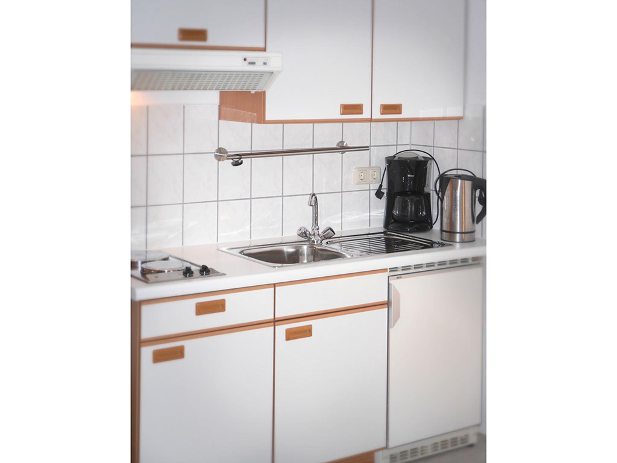 Das helle und geräumige Appartement verfügt über ein Doppelbett. Auf den gemütlichen massiven Kieferholzmöbeln mit TV können Sie entspannte Abende verbringen. Das Badezimmer mit Dusche, WC und Fön rundet das Gesamtbild ab. Eine komplett eingerichtete Kleinküche steht für Sie außerdem bereit. Vor allem im Sommer können Sie sich auf dem eigenen Balkon entspannen. Selbstverständlich können Sie auch die Grillmöglichkeiten in unserem Garten nutzen.