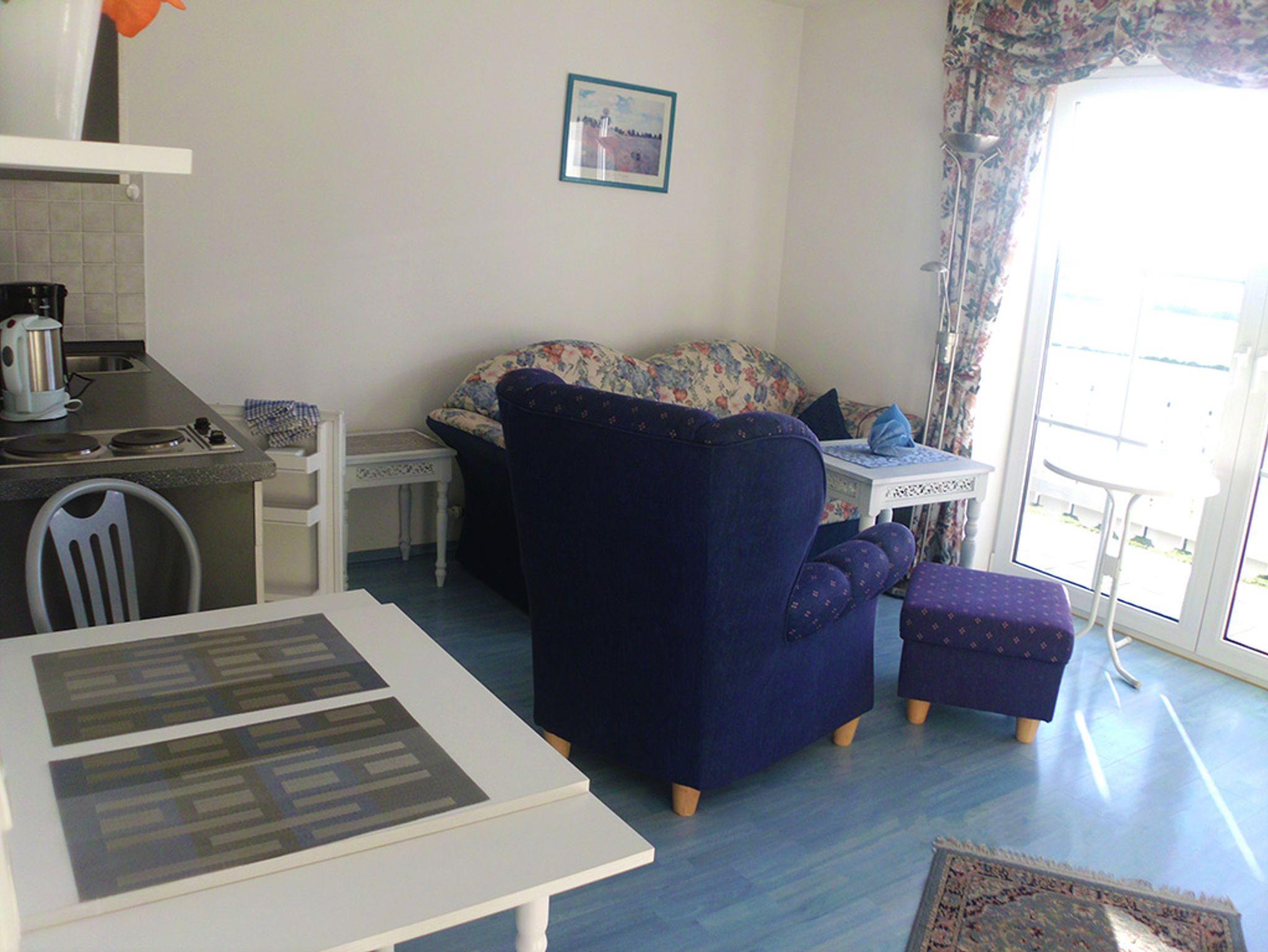 Das 40 qm große Appartement ist ausgestattet mit: Balkon/Terrasse am Zimmer, Bettwäsche vorhanden, Bügelbrett, Doppelbett, Essecke, Fenster können geöffnet werden, Fernseher, Getrennte Matratzen, Handtücher vorhanden, Kaffee und Teekocher, Kaffeemaschine, Kochnische/Kochgelegenheit, Küchenzeile, Kühlschrank, Nichtraucherzimmer, Radio, Satelliten TV, Tisch- und Küchenwäsche vorhanden und Wireless Lan im Zimmer.