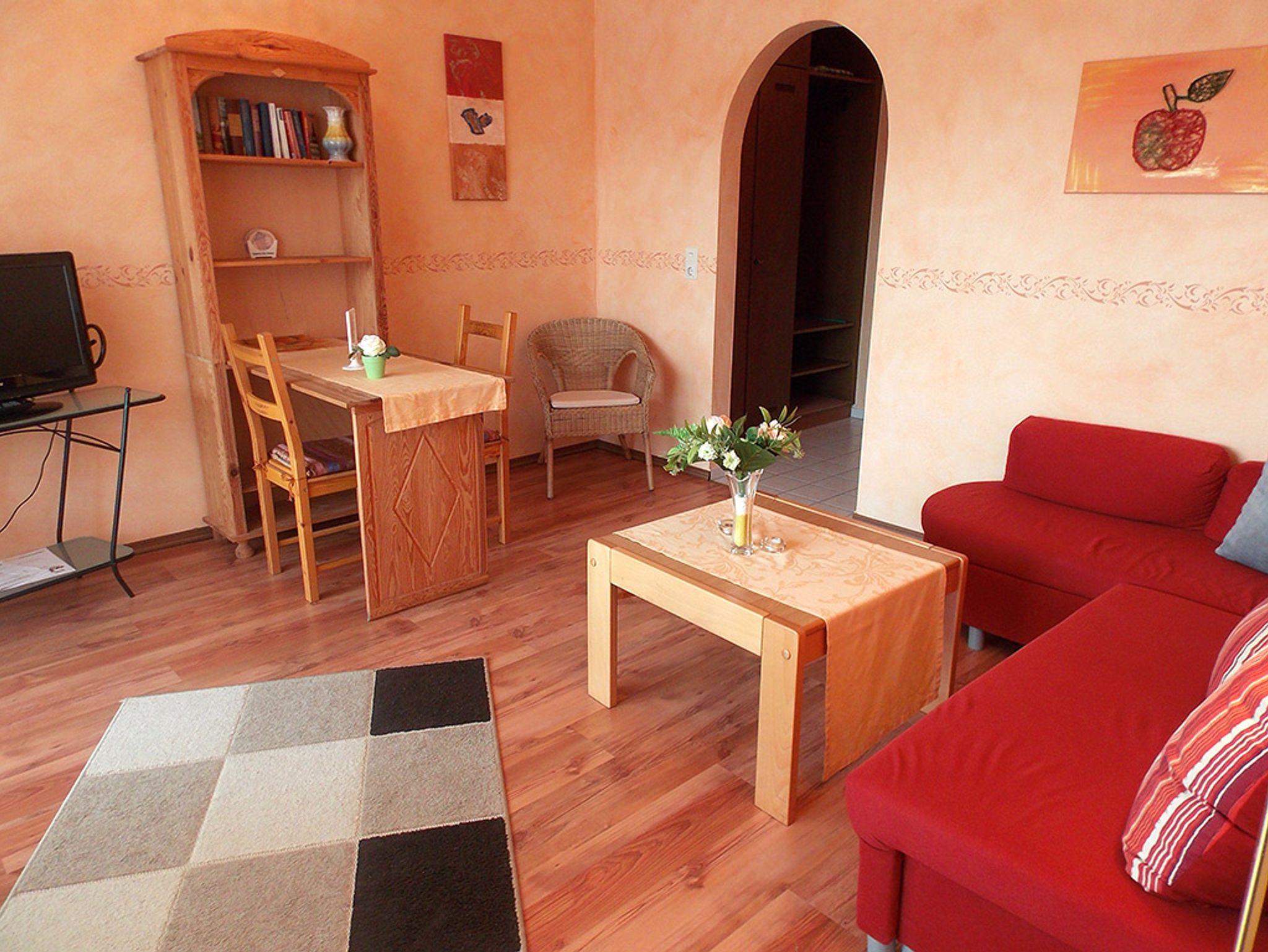Die Suite befindet sich im ersten Obergeschoss des Hauses und ist ca. 45 qm groß. Sie besteht aus einem separaten Wohn- und Schlafraum und verfügt über zwei Balkone. Die Küche ist voll eingerichtet mit Kühlschrank, Cerankochfeld, Mikrowelle, Toaster, Wasserkocher und Kaffeemaschine. Das Bad verfügt über Dusche, WC, Föhn . Das WLAN steht Ihnen kostenfrei zur Verfügung.