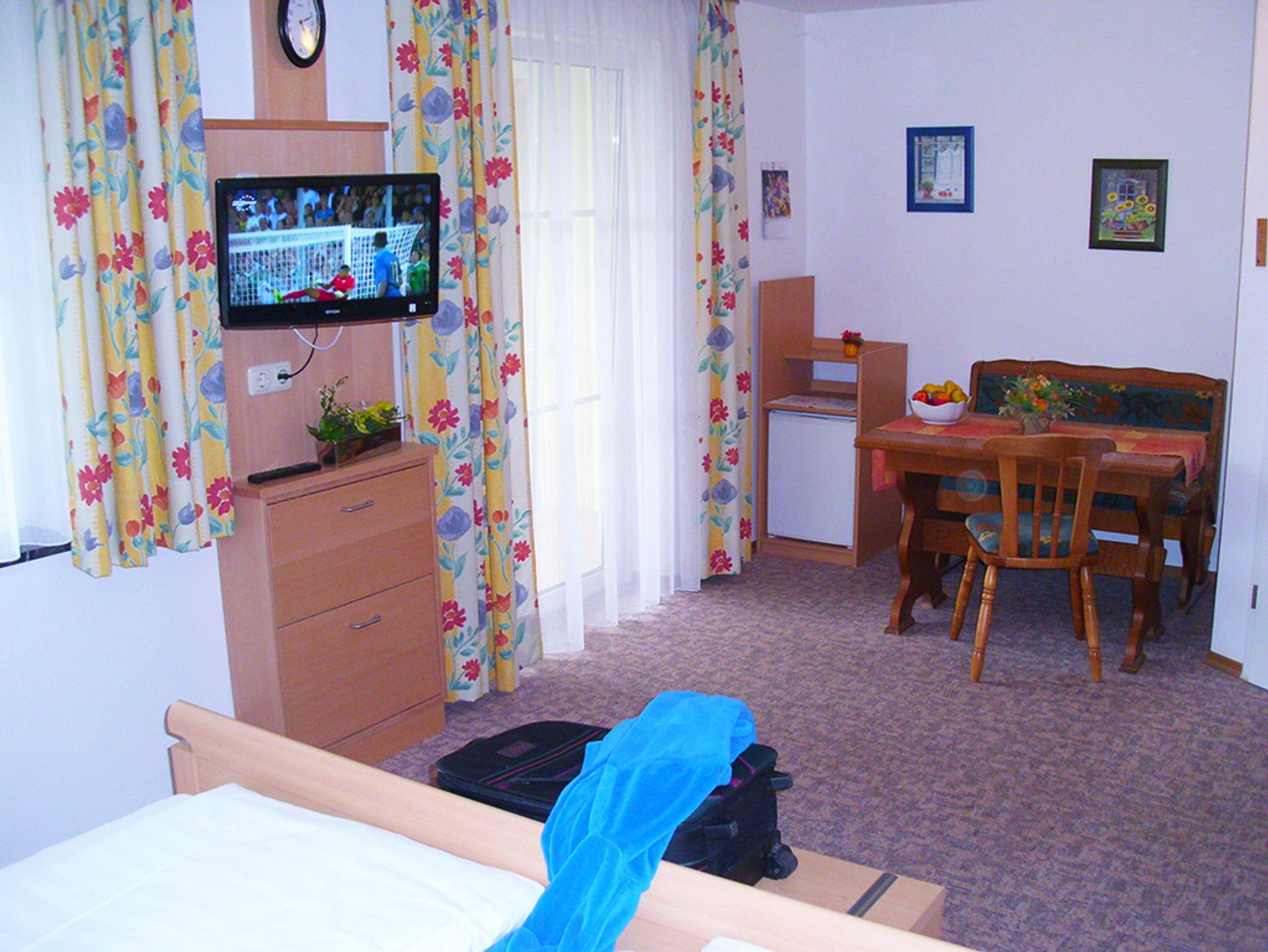 Das 23 m² große Zimmer befindet sich im Erdgeschoss und verfügt über eine große Terrasse Richtung Süden zur Gartenseite, von da aus Sie den Blick ins Rottal genießen können.