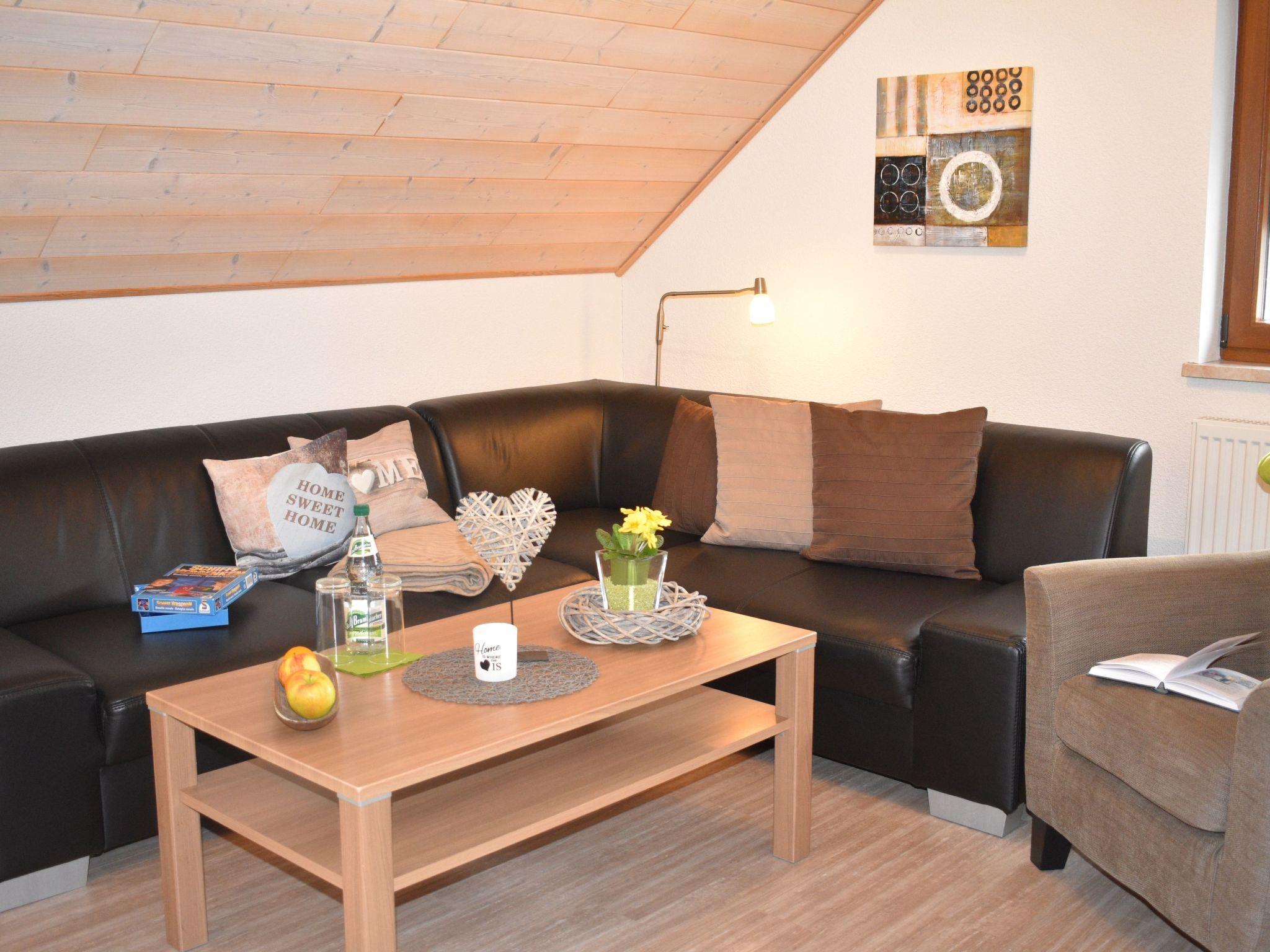 The interior leaves nothing to be desired: A fully equipped fitted kitchen with dishwasher, microwave, fridge-freezer, ceramic hob and a variety of kitchen utensils makes cooking a pleasure. Spend cosy hours in front of the 40" flat screen, enjoy music on the radio-CD system or relax with a selection of games and books. Two separate bedrooms, each with a double bed (1.80 m x 2.00 m) and high-quality mattresses, are available for a restful night's sleep. The bathroom has a threshold-free shower, washing machine, tumble dryer, hairdryer, towel radiator and modern bathroom furniture with plenty of storage space. Amenities such as shower towels, hand towels and kitchen towels are provided and can be changed free of charge on request (once a week)