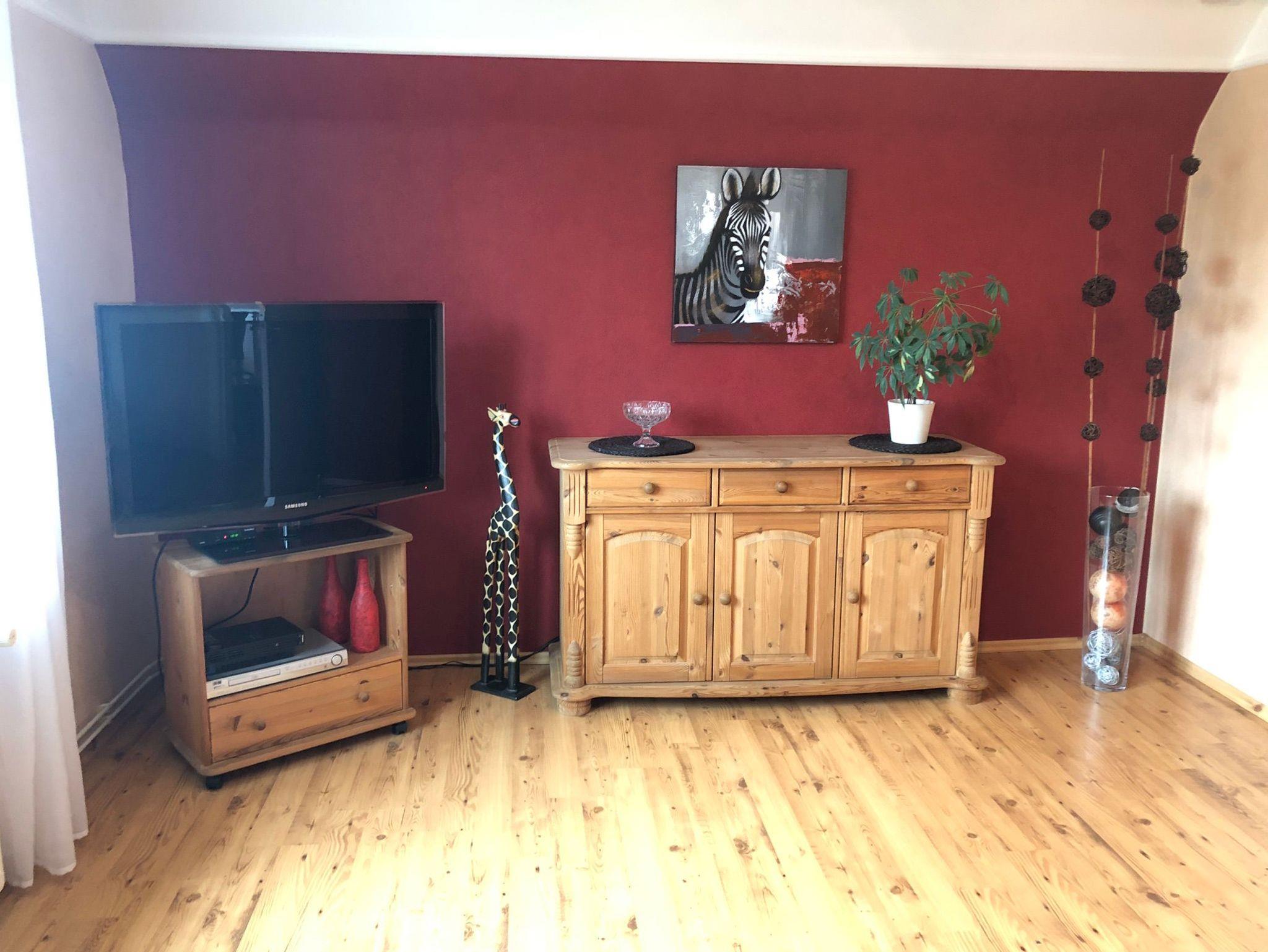 Die 2-Zimmer-Nichtraucher-Wohnung für 2 Personen (Wohnzimmer, Schlafzimmer, Küche und Bad) liegt in der 1. Etage (ca. 47 qm, Schrägen). Die Tür zur Ferienwohnung liegt im EG/ Vorflur. Eine Treppe führt in den oberen Flur (Korkboden), hier oben befindet sich keine Tür-Abgrenzung zur Treppe. Alle Räumlichkeiten sowie die Dachterrasse sind vom Flur aus begehbar. TV, Radio, CD- und DVD-Player, Wäscheständer, Bügeleisen und Bügelbrett gehören zur Ausstattung. Nach Absprache bieten wir: Einkaufsservice vor Anreise, Getränkeservice, Reinigungsservice während des Aufenthaltes. Sprechen Sie uns auch gerne an, wenn Sie sich ein Kanu zum Schippern auf der Au ausleihen möchten. Informationen über die Region und diverse Veranstaltungen finden Sie in einer Mappe, die in der Wohnung ausliegt.