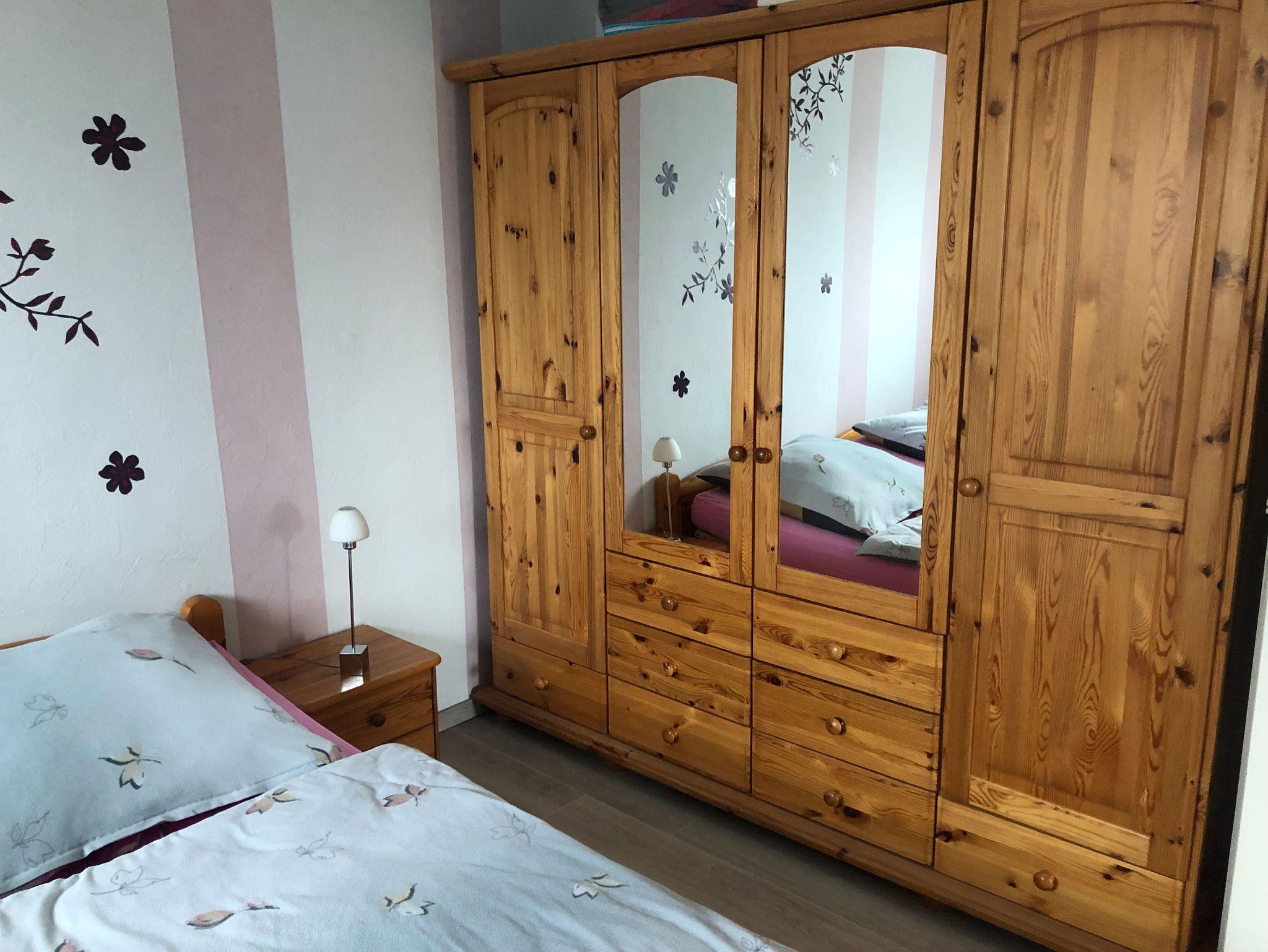 Das Schlafzimmer ist mit Laminat und 2 Einzelbetten - am Fußende mit Wandbegrenzung, getrennt oder zusammen aufstellbar - ausgestattet. Selbstverständlich stehen bezogene Betten und Handtücher für Sie bereit. Auf Wunsch erhalten Sie zusätzliche Decken und Kopfkissen.