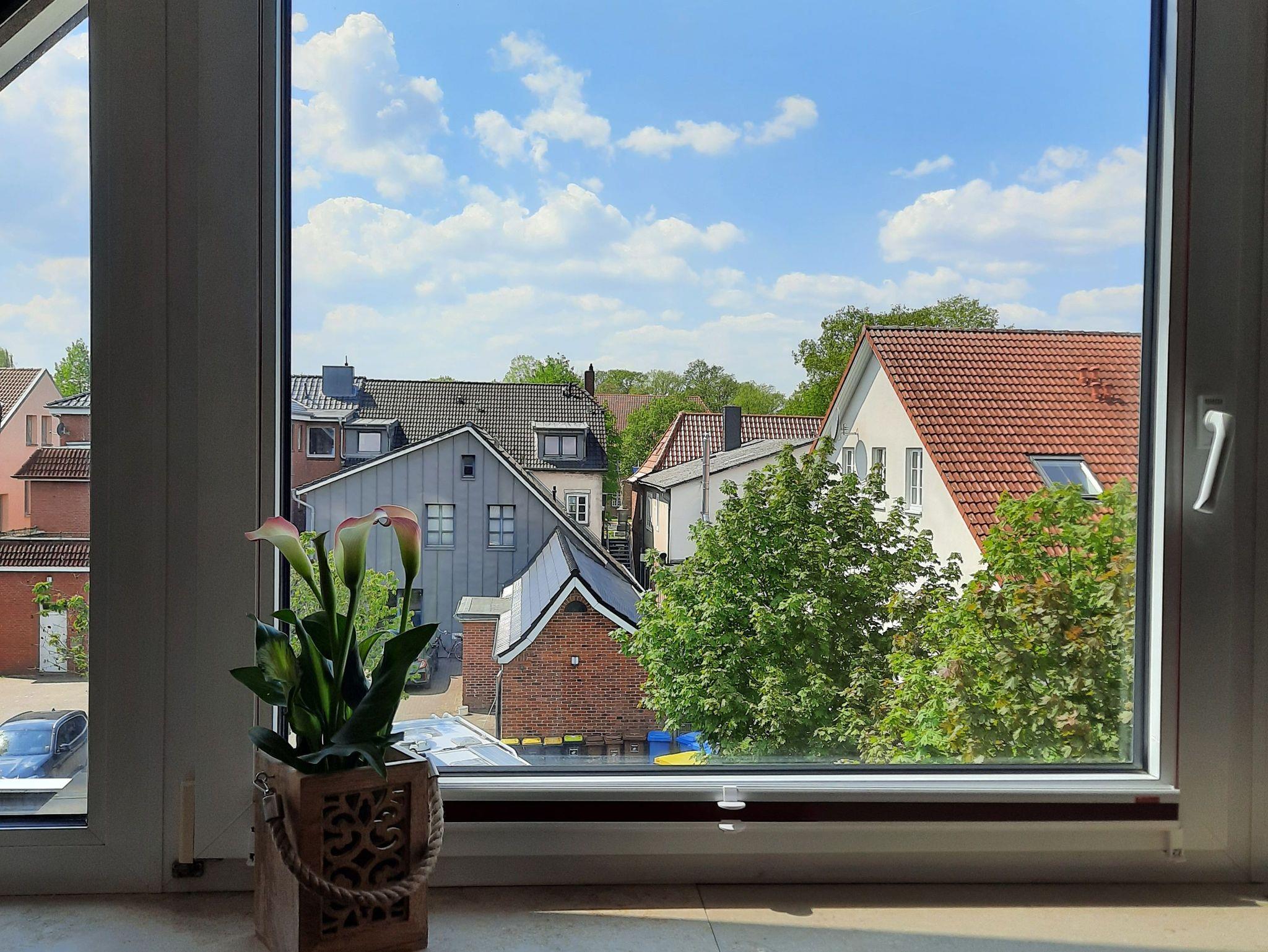 Wenn Sie einen Blick aus dem Wohnzimmerfenster Richtung Schloss werfen, erspähen Sie die Roland Statue.