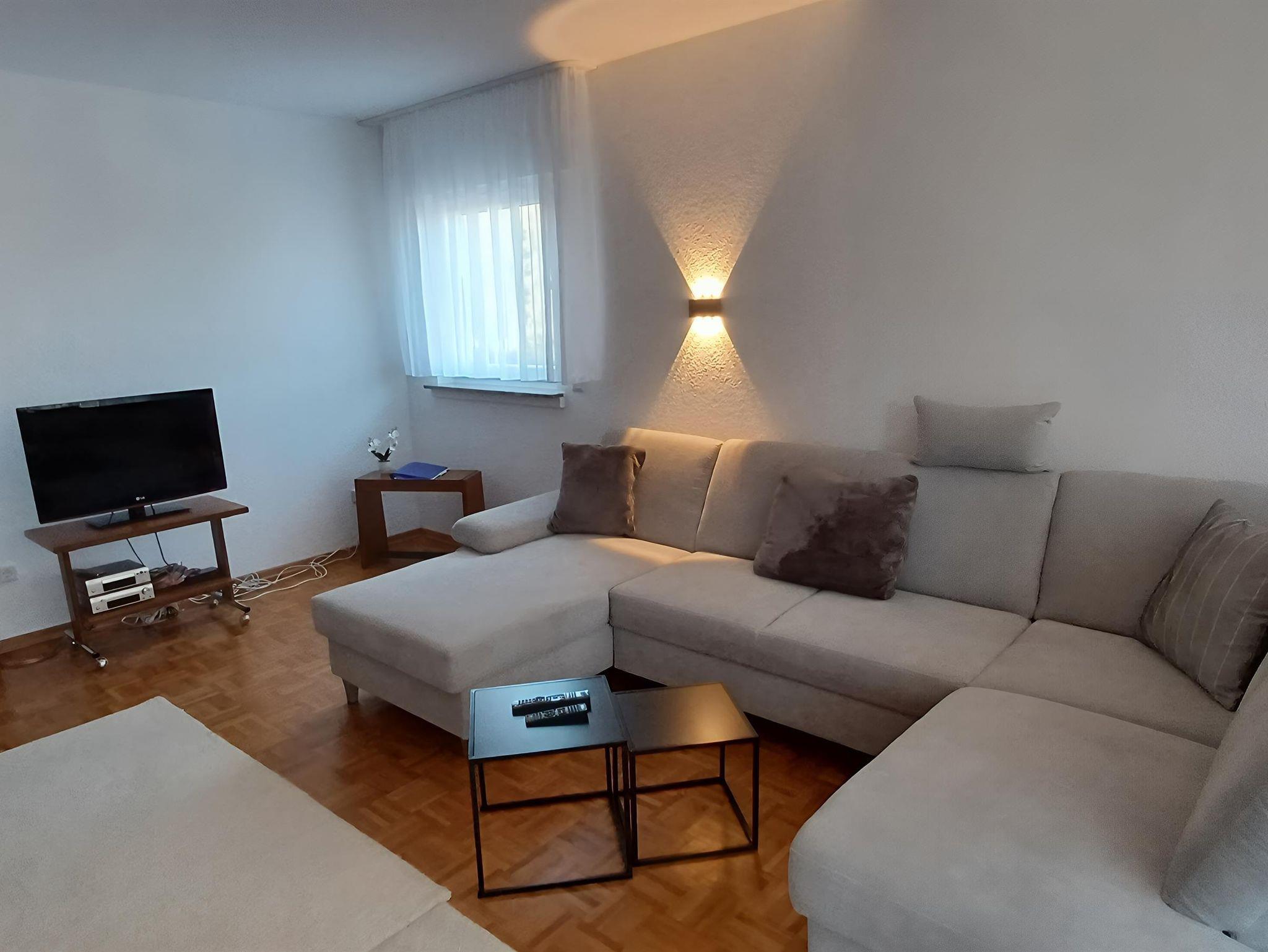 Helle, komfortabel ausgestattete 2-Zimmer-Wohnung im 1. OG nahe Römer-Thermen mit großem Wohnzimmer, Küche mit umfangreicher Küchenausstattung, Badezimmer, Schlafzimmer mit großem Doppelbett und kostenlosen öffentlichen Parkplätzen vor dem Haus.