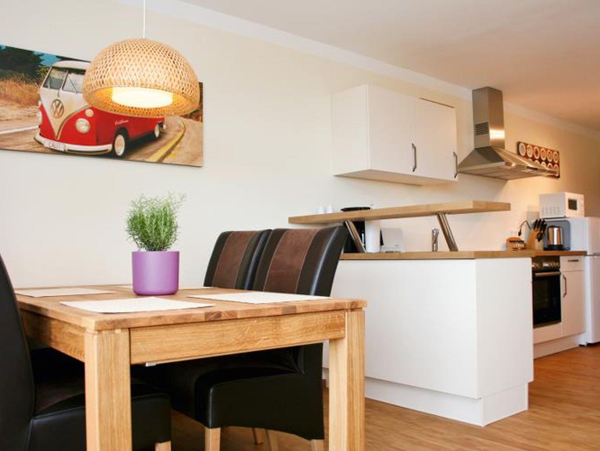 - Zwei Schlafzimmer, eines mit einem Doppelbett, eines mit zwei Einzelbetten - Ein Schlafsofa im Wohnbereich (Liegefläche ca. 200 x 120 cm) - Ein Bad mit Dusche und Toilette - Ein großer offener Koch-/Ess-/Wohnbereich mit großem nach Süden ausgerichtetem Panoramafenster - Herd/Backofen, Kühl-/Gefrierkombination, Spülmaschine, Kaffeemaschine, Toaster, Mikrowellenherd usw. sind in der vollbestückten Küche vorhanden - SAT-TV, Flachbildschirm, BlueRay-Player, Mini-Stereo-Anlage stehen bereit - WLAN-Internetzugang auf Anfrage - Ein großer Balkon (ca. 11 qm pro Wohnung) mit Südausrichtung und tollem Ausblick über das Rebenmeer ins Rheintal - Alle Zimmer sind hochwertig und stilvoll möbliert - Zusätzlich können noch bis zu 2 Zustellbetten bereitgestellt werden