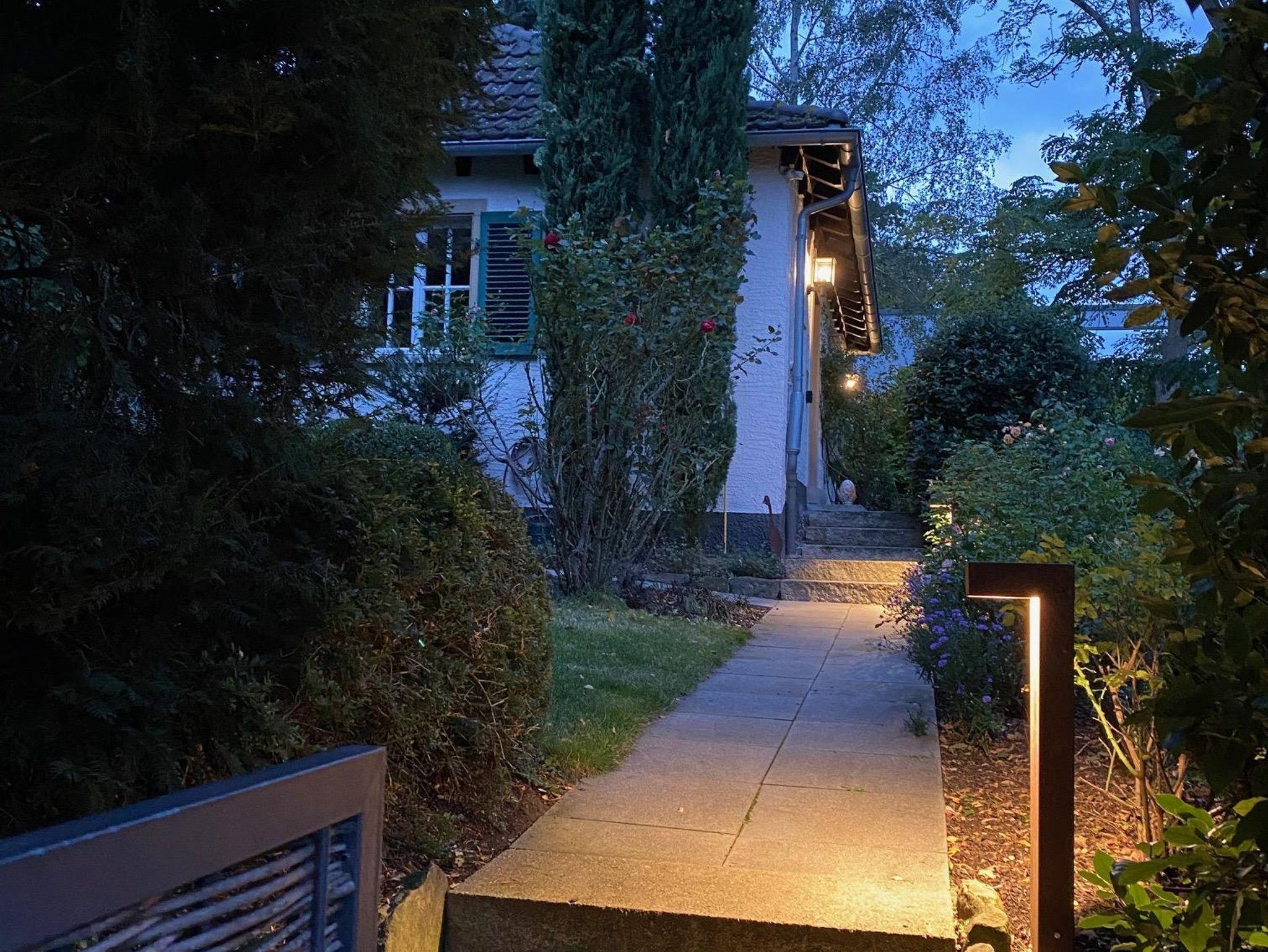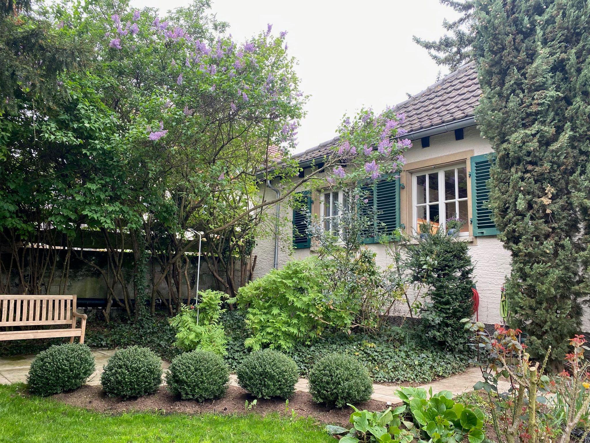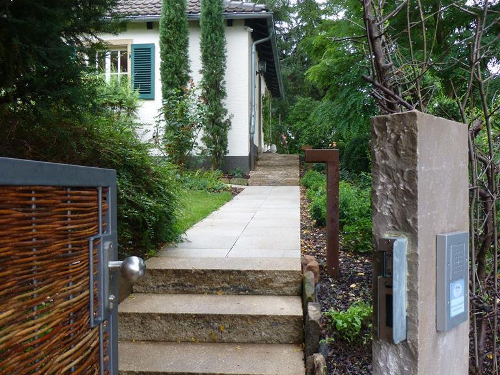 Das kleine, stilvolle Landhaus steht frei auf einer Anhöhe mit Blick auf die gegenüberliegende Talseite und über Bad Dürkheim hinweg in die Rheinebene. Mehrere Treppenstufen (ca.20) führen von der ruhigen Sackgasse mit guten Parkmöglichkeiten zum Eingang des Gartens. Das Wohnhaus liegt idyllisch in einem gepflegten Garten mit Rasenfläche. Die gesamte Wohnfläche beträgt ca. 60 m² und bietet 2 Personen sehr gute Aufenthaltsqualitäten.