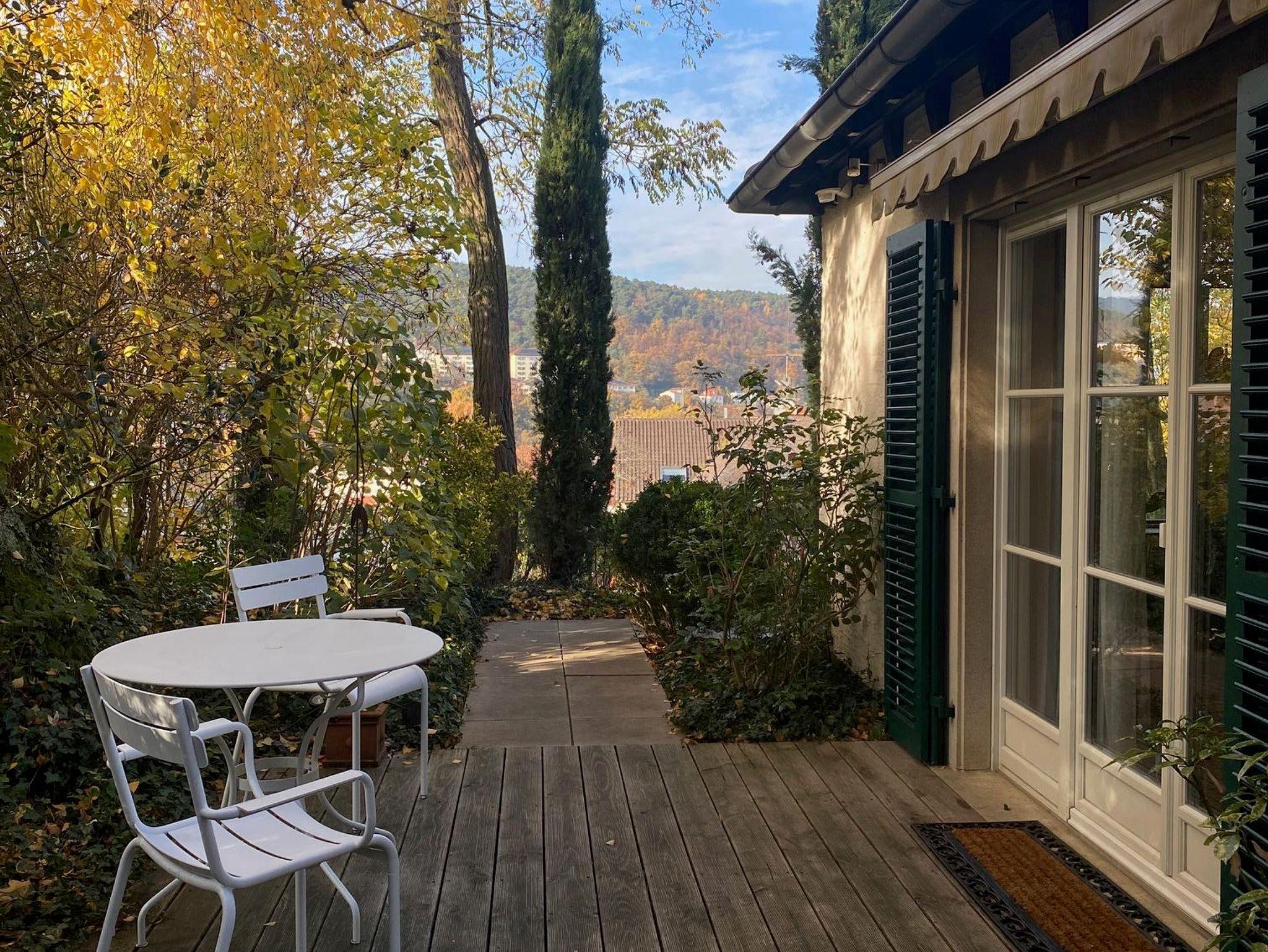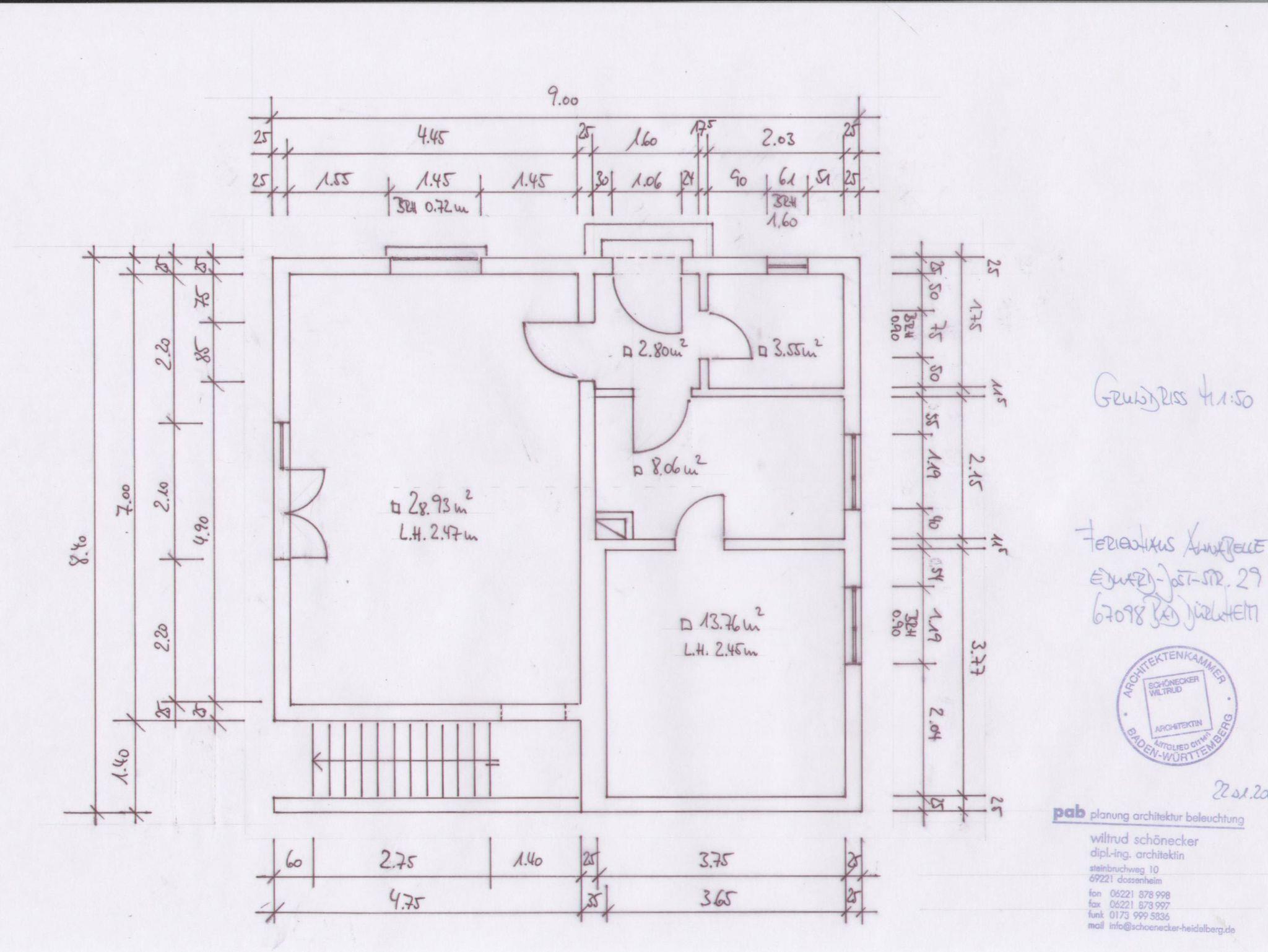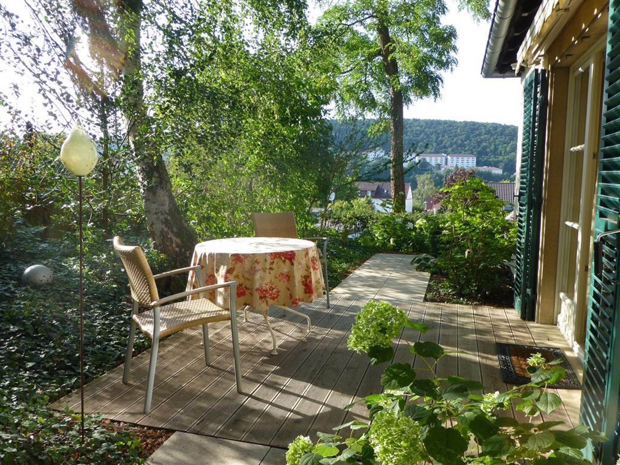 Das kleine, stilvolle Landhaus steht frei auf einer Anhöhe mit Blick auf die gegenüberliegende Talseite und über Bad Dürkheim hinweg in die Rheinebene. Mehrere Treppenstufen (ca.20) führen von der ruhigen Sackgasse mit guten Parkmöglichkeiten zum Eingang des Gartens. Das Wohnhaus liegt idyllisch in einem gepflegten Garten mit Rasenfläche. Die gesamte Wohnfläche beträgt ca. 60 m² und bietet 2 Personen sehr gute Aufenthaltsqualitäten.