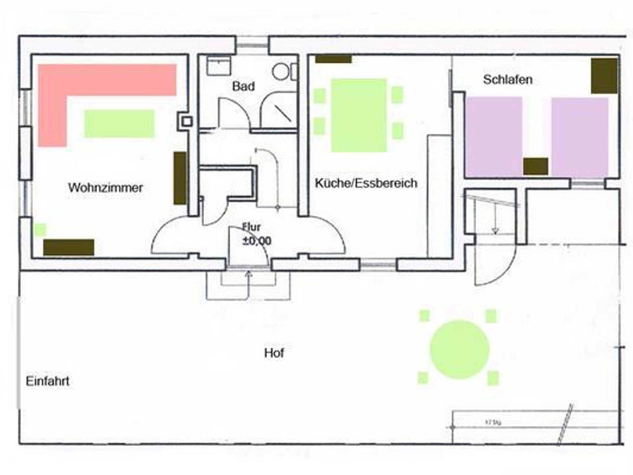 Die FeWo mit Tageslichtbad liegt im Erdgeschoß. Das Bad erreichen Sie in der Wohnung, vom Flur aus, über wenige Treppenstufen. Austattung: – zwei Einzelbetten (zusammenstellen möglich) – Beistellbett auf Anfrage – Wohnzimmer mit großer Schlafcouch – Küche mit Essbereich – Backofen, Cerankochfeld und Kühlschrank – Mikrowelle, Senseo-Kaffeepadmaschine, Toaster und Wasserkocher – TV SAT, Radio, CD Player – Fön, Kosmetikspiegel, Dusche Bettwäsche und Handtücher sind vorhanden. Ausstattung Außenbereich: – ansprechender Innenhof mit Sitzmöglichkeiten – abschließbare Parkmöglichkeit für einen PKW – Motorrad, Fahrrad oder ähnliches zusätzlich möglich Geeignet für Nichtraucher, Familien und Alleinreisende. Haustiere sind nicht erlaubt.