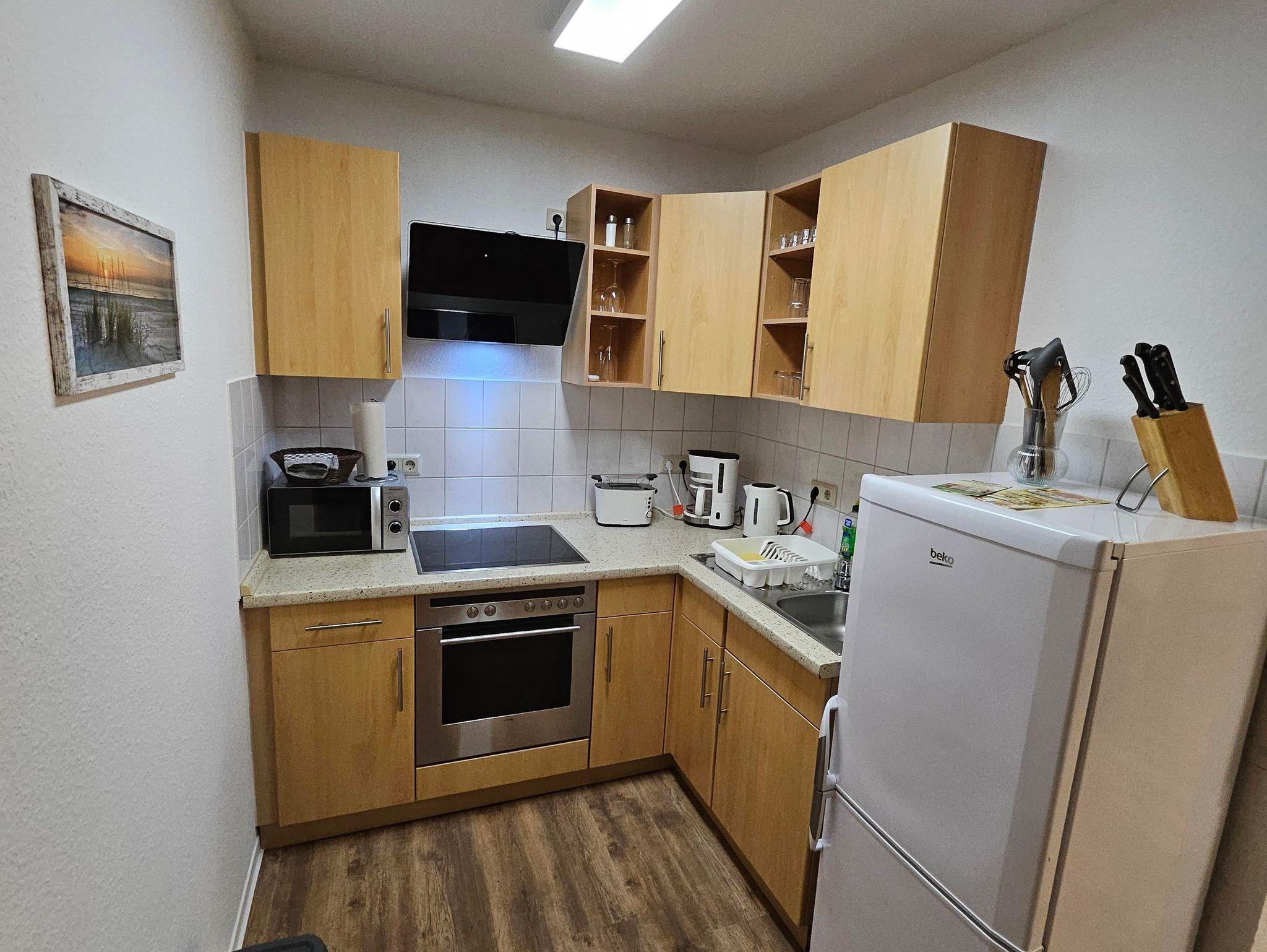 Frisch Saniert. Diese Ferienwohnung mit Klimaanlage für 2 ist eine kleine Doppelhaushälte mit ca. 50 m² und bereit für Sie. Hier wartet ein Schlafzimmer mit 3 Einzelbetten, ein offener Wohn/ Küchenbereich auf Sie und Dusche und WC sind getrennt. Wir freuen uns auf Sie.