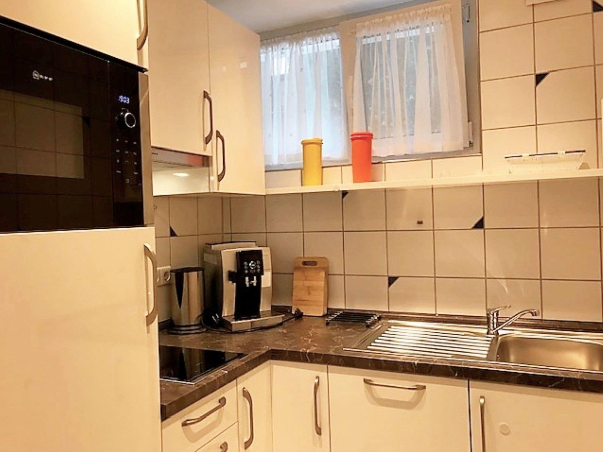 Inside, you will find a lovingly redesigned flat, which has been designed for two people on 48 square metres. As non-smoking and allergy-friendly accommodation, it offers a comfortable, bright living area with an upholstered seating area, two adjustable leather TV armchairs, flat-screen TV, DVD player and a fully equipped kitchen. This includes a double electric oven with ceramic hob, microwave and dishwasher. The modern living room/bedroom with a 2 metre double bed and a high-quality bathroom round off the accommodation and, together with the free Wi-Fi connection, guarantee a pleasant stay.