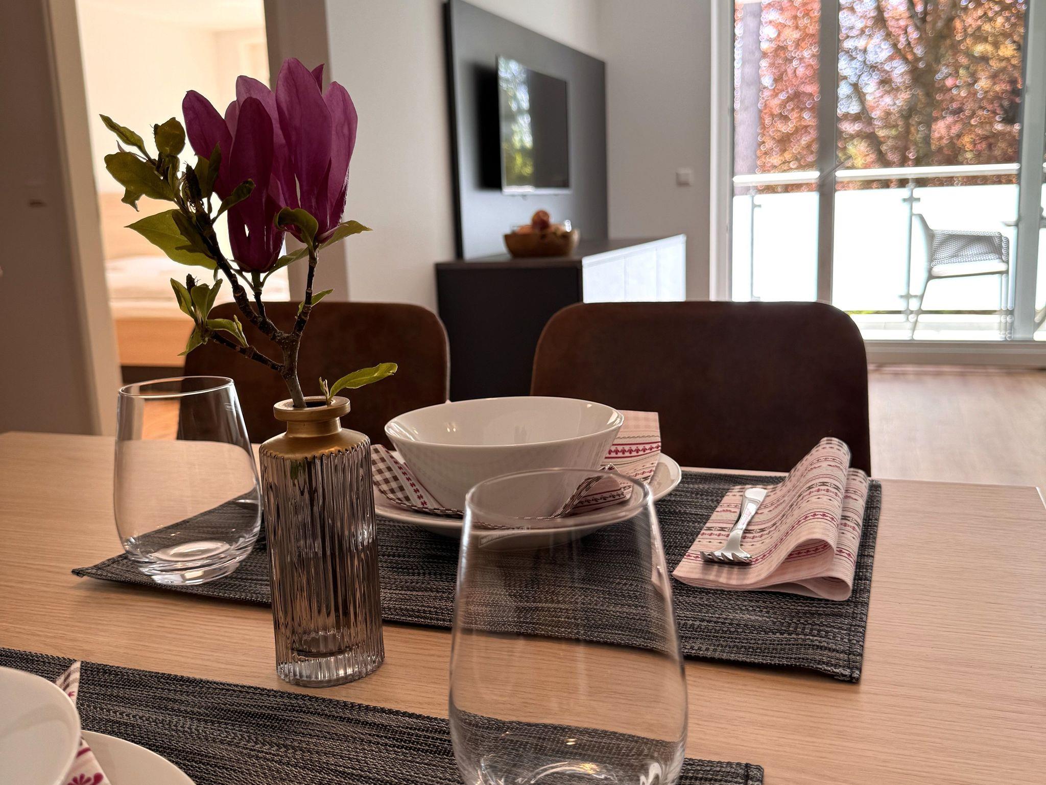 Das KOMFORT mit Parkblick ist ein 2-Zimmer-Apartment, mit einer Fläche von 50-56 m² und bietet eine ideale Kombination aus Gemütlichkeit und Funktionalität, um bis zu 4 Personen ein heimeliges Erlebnis fern von Zuhause zu ermöglichen. Inmitten der lebendigen Atmosphäre von Bad Dürrheim und wunderschönem Blick auf die kleine Parkanlage, ist das KOMFORT mit Parkblick Apartment der perfekte Ort für Ihre entspannte Auszeit.