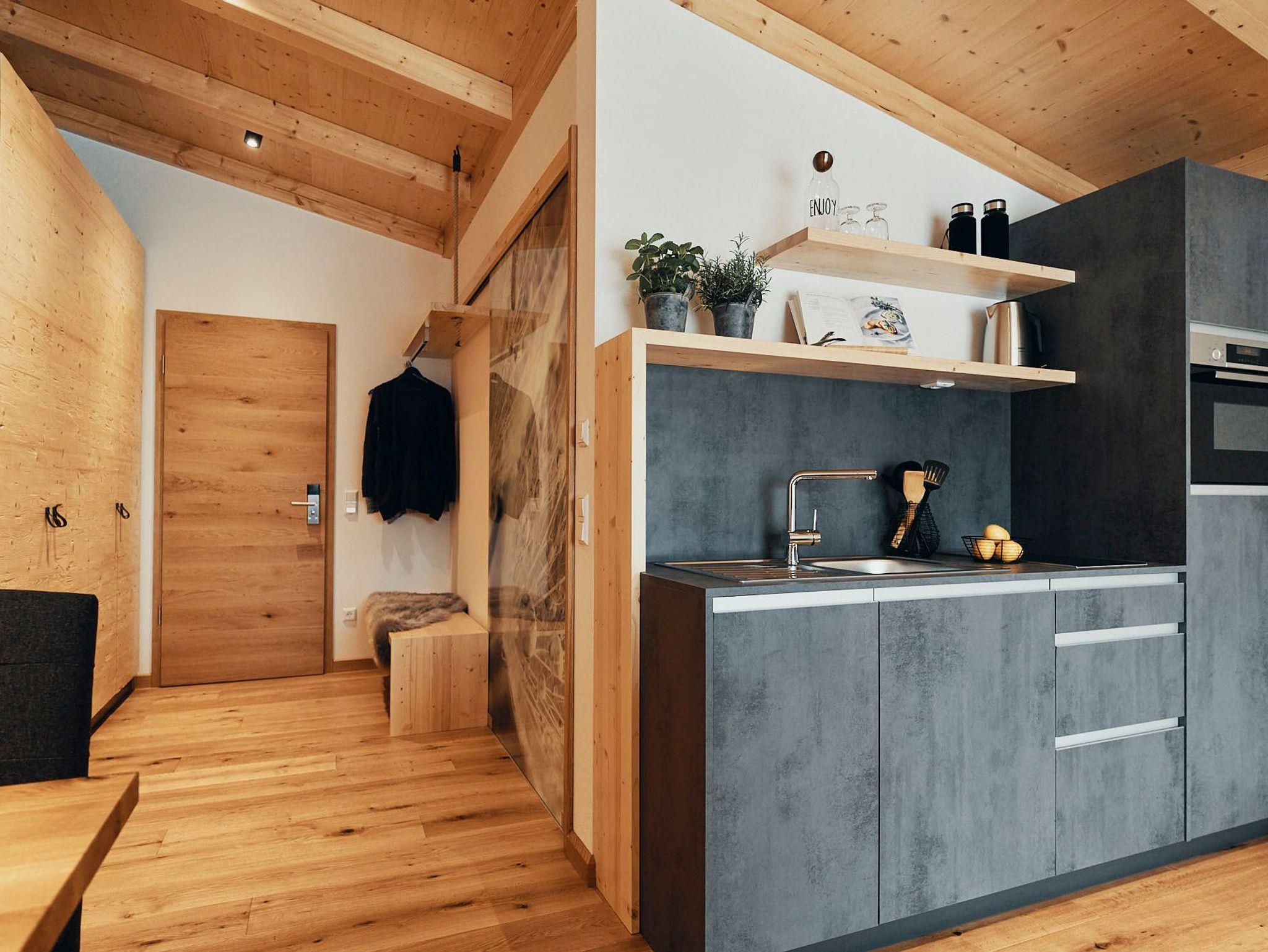 Das Ruhe.Puls Apartment bietet auf 37 m² Wohnfläche und einer 10 m² großen Terrasse Platz für bis zu 4 Personen. Es befindet sich im Erdgeschoss und überzeugt durch die Verwendung von Zirbenholz, das für seine beruhigenden und gesundheitsfördernden Eigenschaften bekannt ist. Das Apartment umfasst ein Doppelbett (180 x 200 cm) und eine Schlafcouch (145 x 200 cm) sowie ein modernes Badezimmer mit Regendusche. Die Räume sind rollstuhlgerecht gestaltet und ermöglichen eine barrierefreie Nutzung. Die ruhige Lage und das natürliche Design machen es zu einem idealen Ort für Erholung und Entspannung.