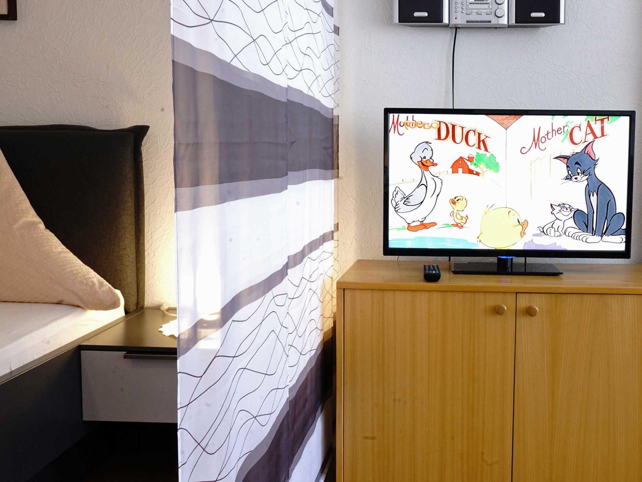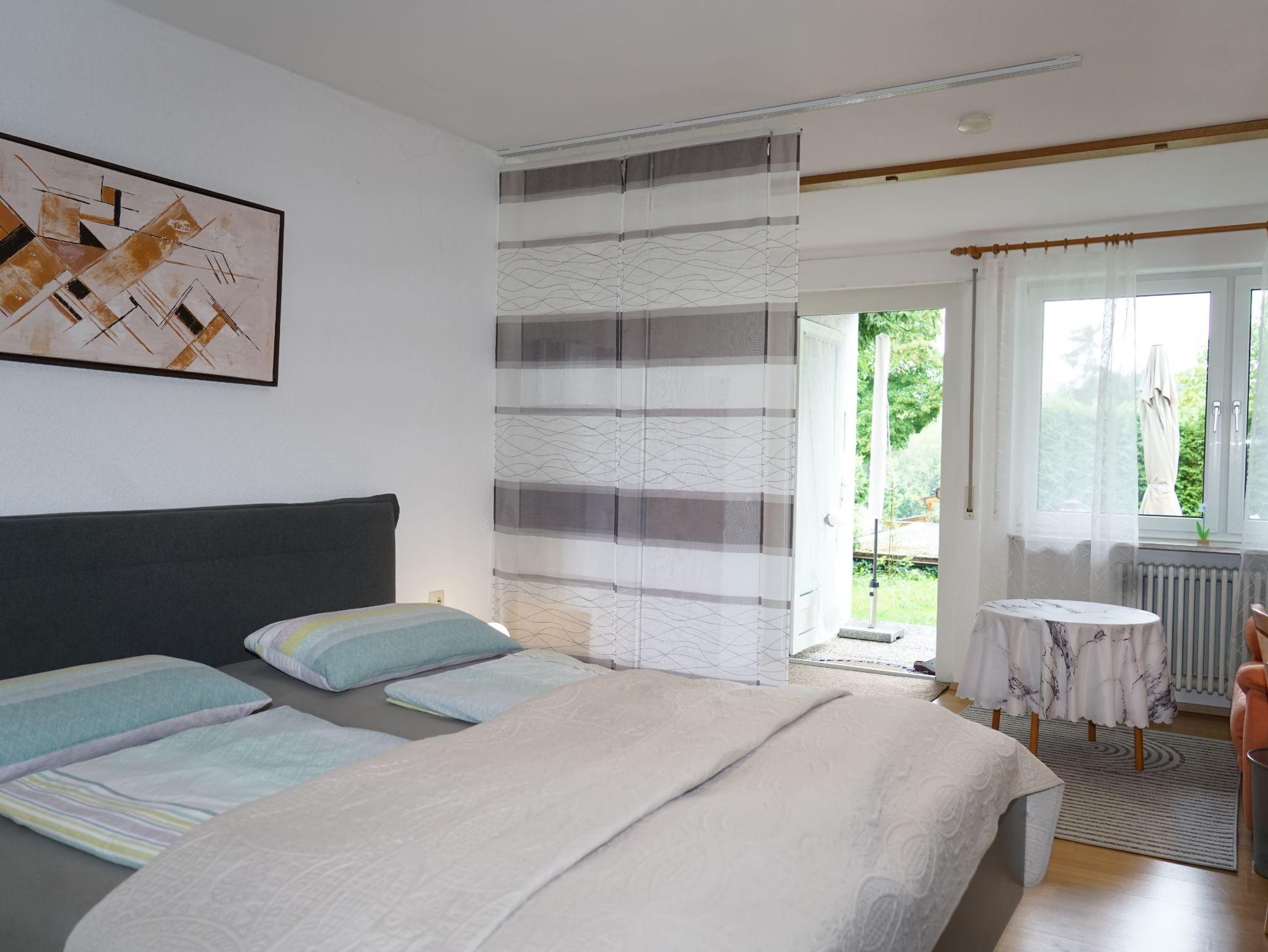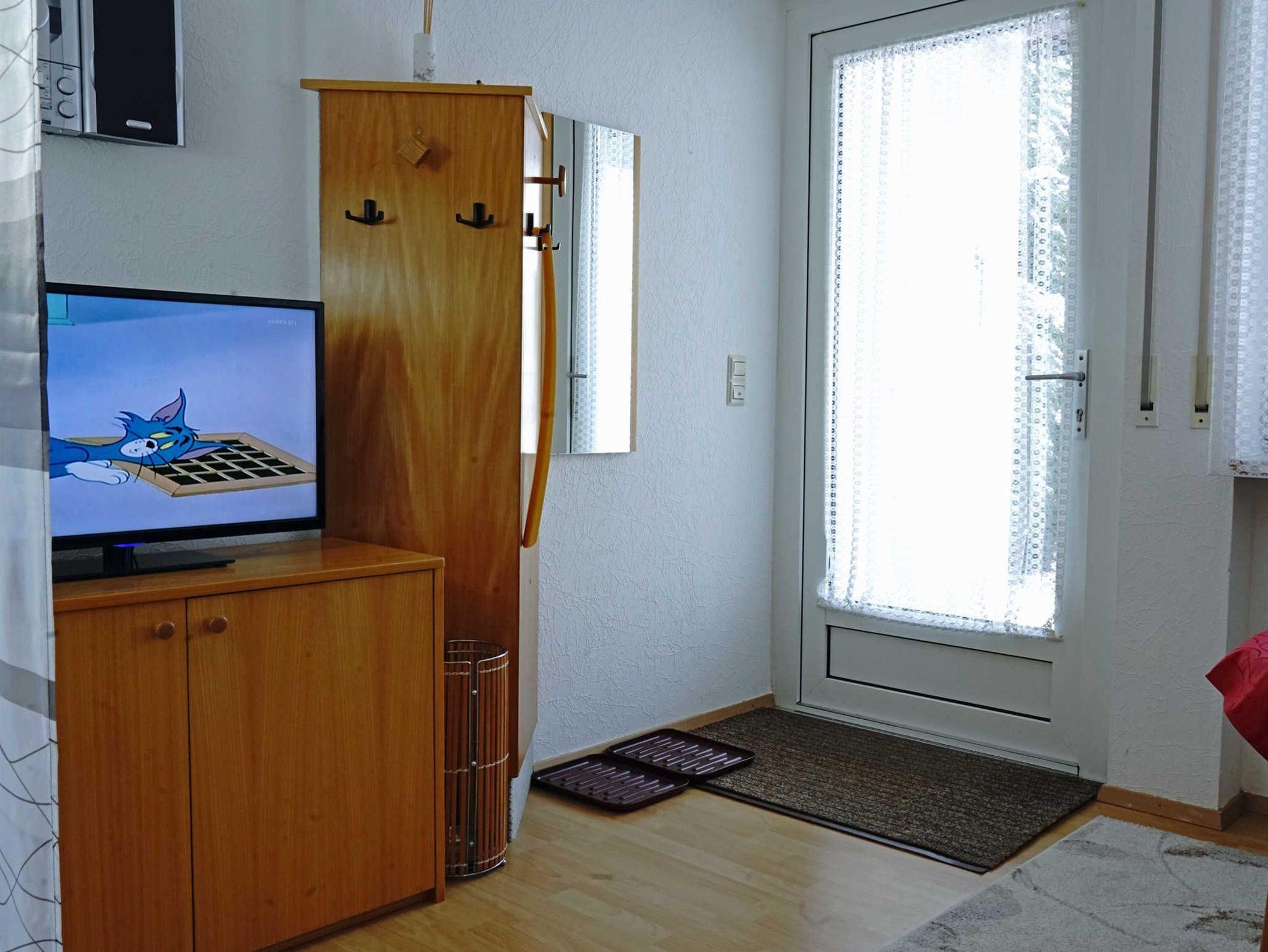 Die Nichtraucher Ferienwohnung Nr.4 hat einen schönen Aussen Sitzplatz und ist ca. 44qm gross. Im grossen kombinierten Wohn-Schlafraum gibt es ein bequemes Sofa und einen SAT Fernseher.