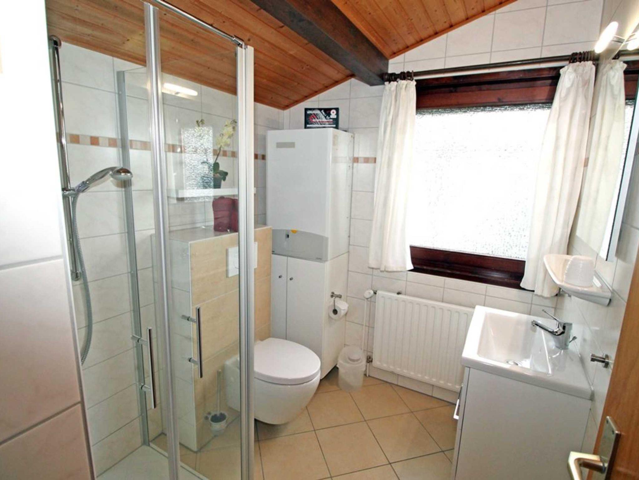 Das Badezimmer ist mit einer eben begehbaren Dusche, spülrandlosen Komfort-WC und Föhn ausgestattet.