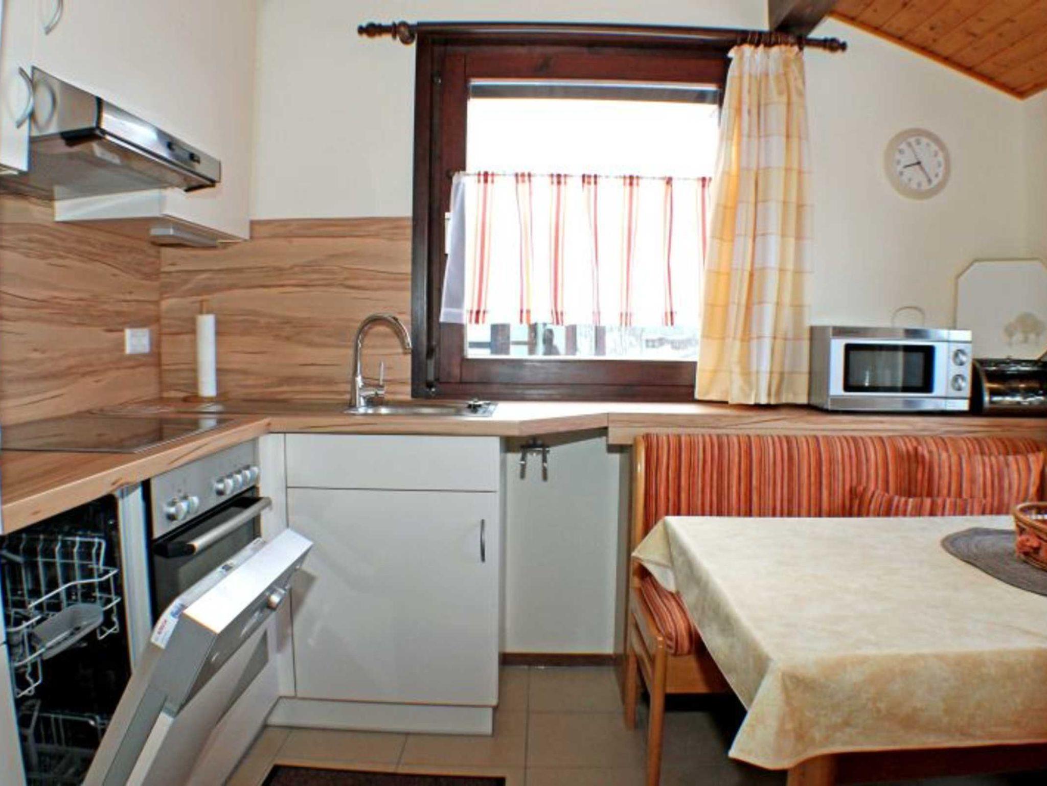 Im Wohnraum mit Terrassenzugang finden Sie einen digitalen Flachbild-TV, DVD-Player, eine Stereo-Anlage, eine Sony Playstation 2 inkl. Spieleauswahl und kostenlosem WLAN-Internet-Anschluss (Vodafone 30 MBit). Ein zweiter Flachbild-TV steht im 2. Schlafzimmer (ein Bett und ein Hochbett) bereit. Im anschliessenden modern ausgestatteten Küchenbereich mit Herd, Mikrowelle, Backofen und Geschirrspüler befindet sich der gemütliche Essplatz. Im Abstellraum stehen u.a. Polster für die Terrassenmöbel, Liegestühle, ein Holz-Schlitten, ein Kinderreisebett und ein Kinderhochstuhl bereit.